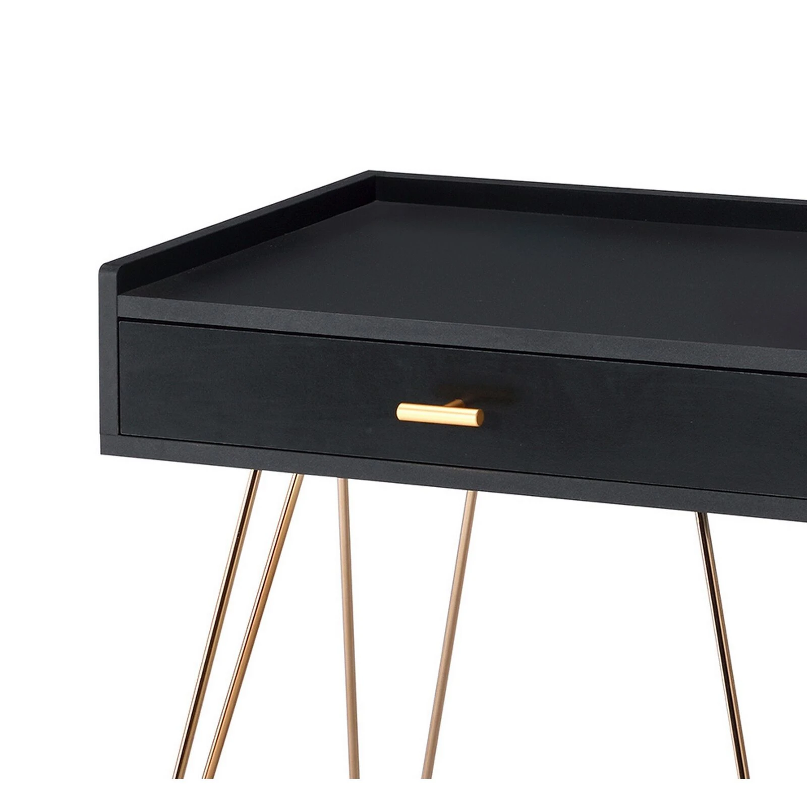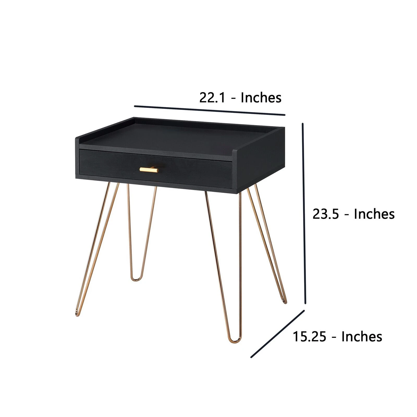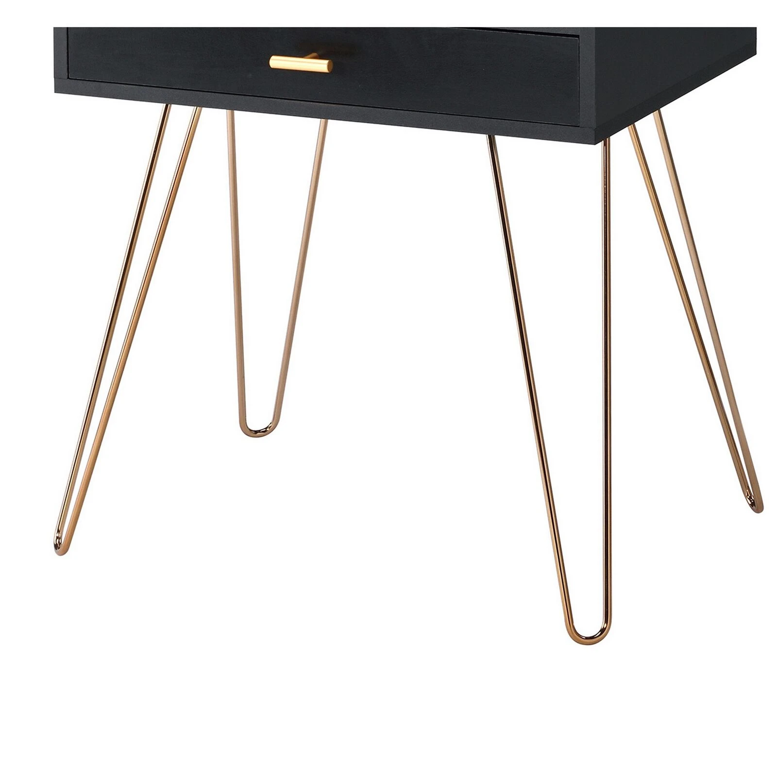 23.5 Inches 1 Drawer End Table with Hairpin Legs, Black and Copper-Benzara