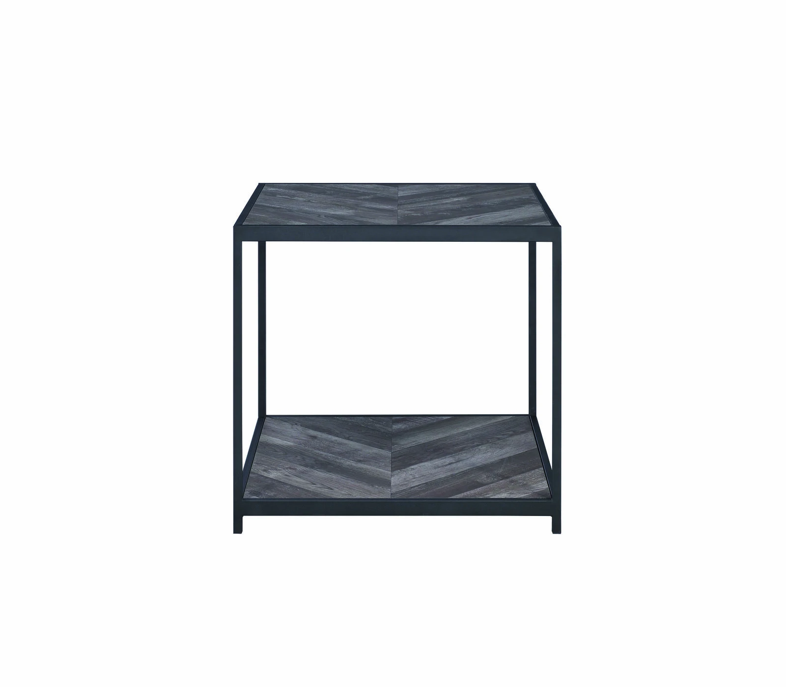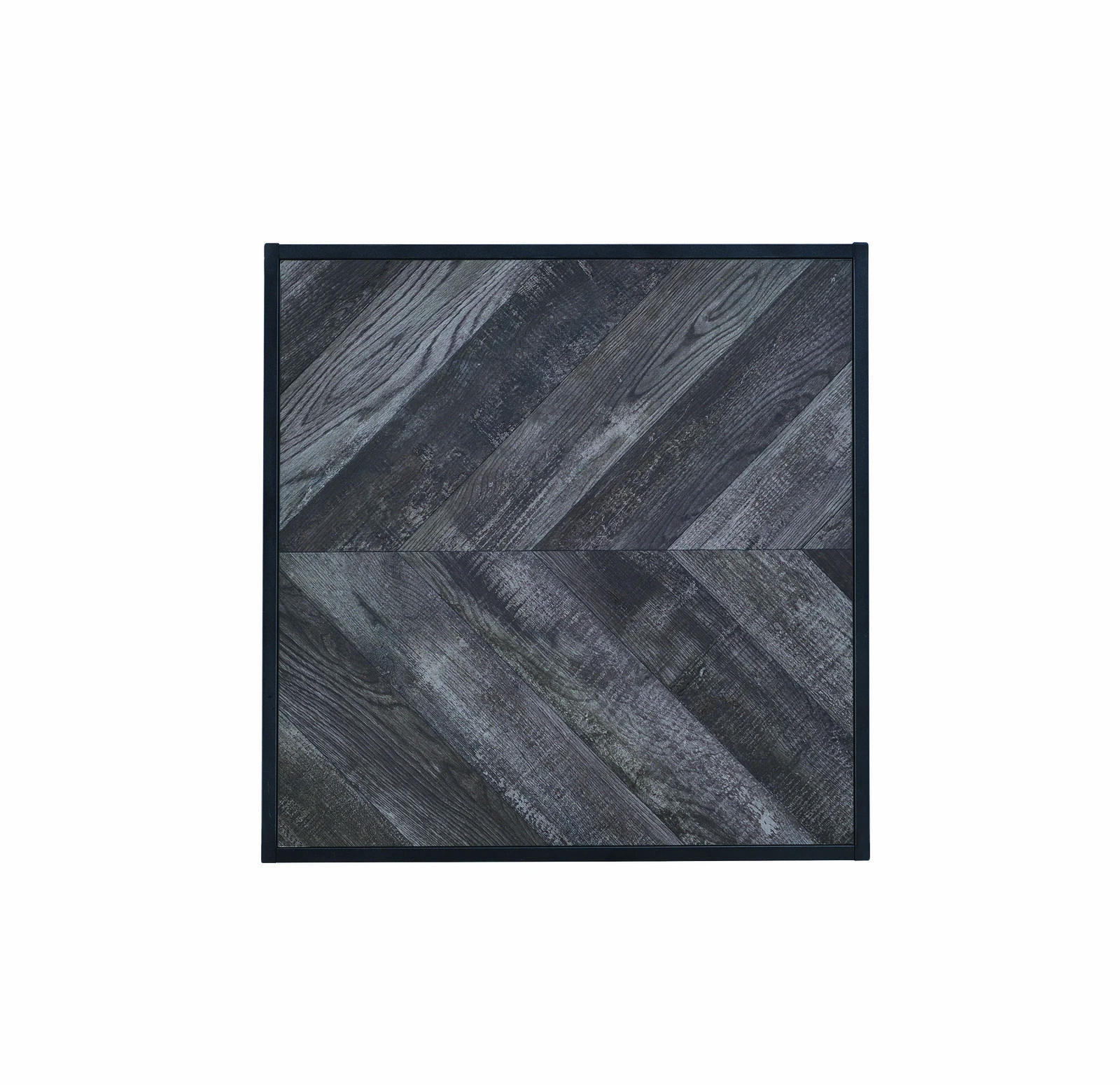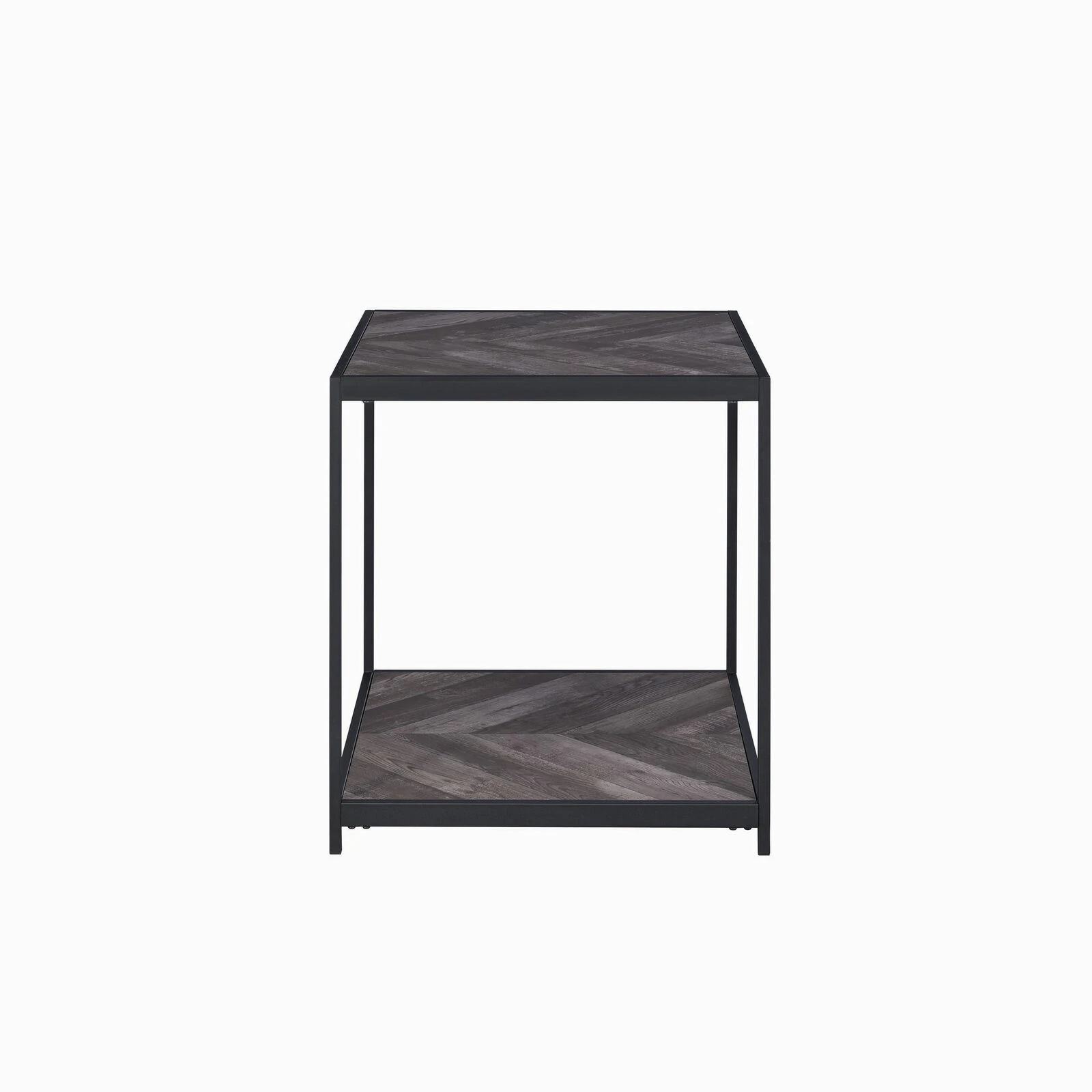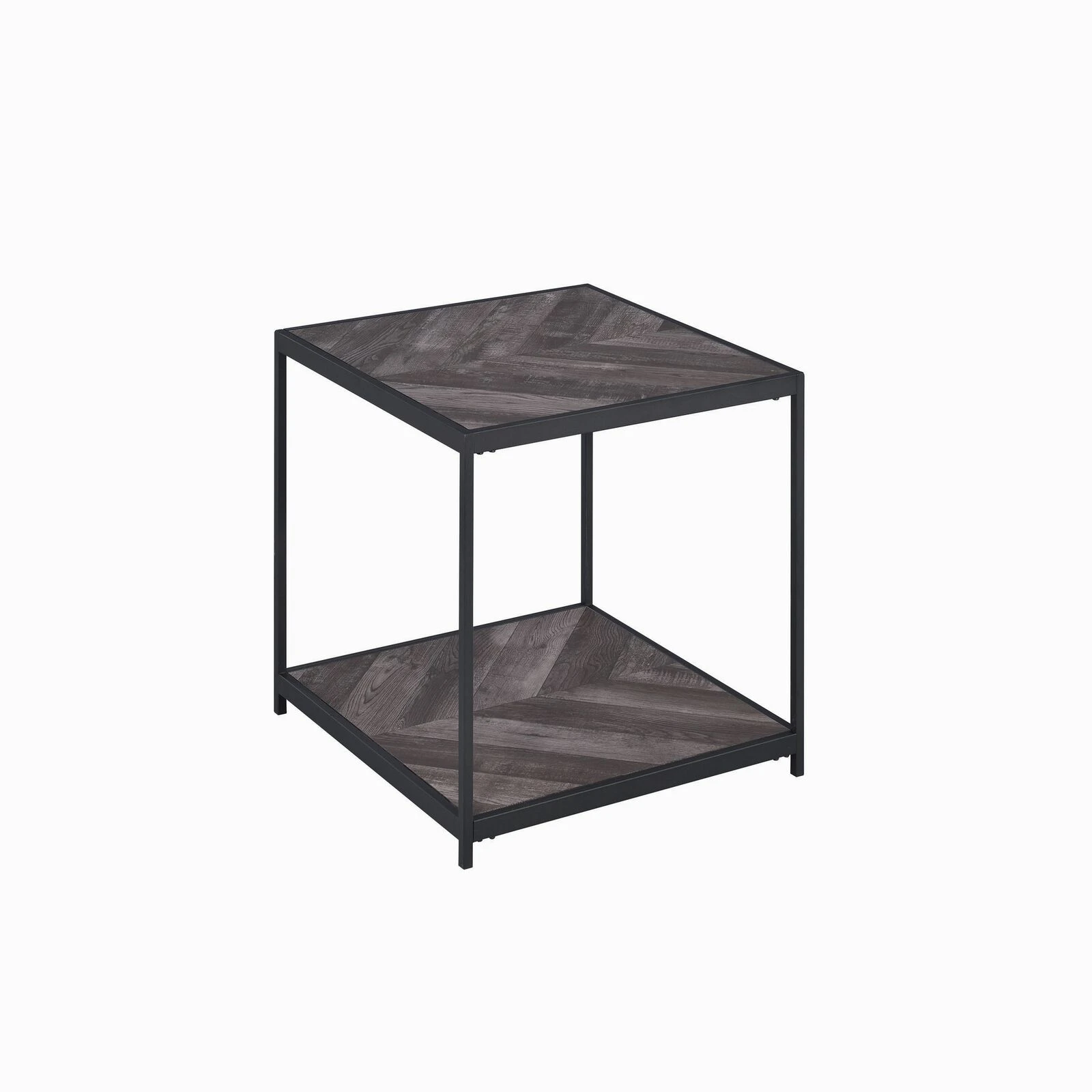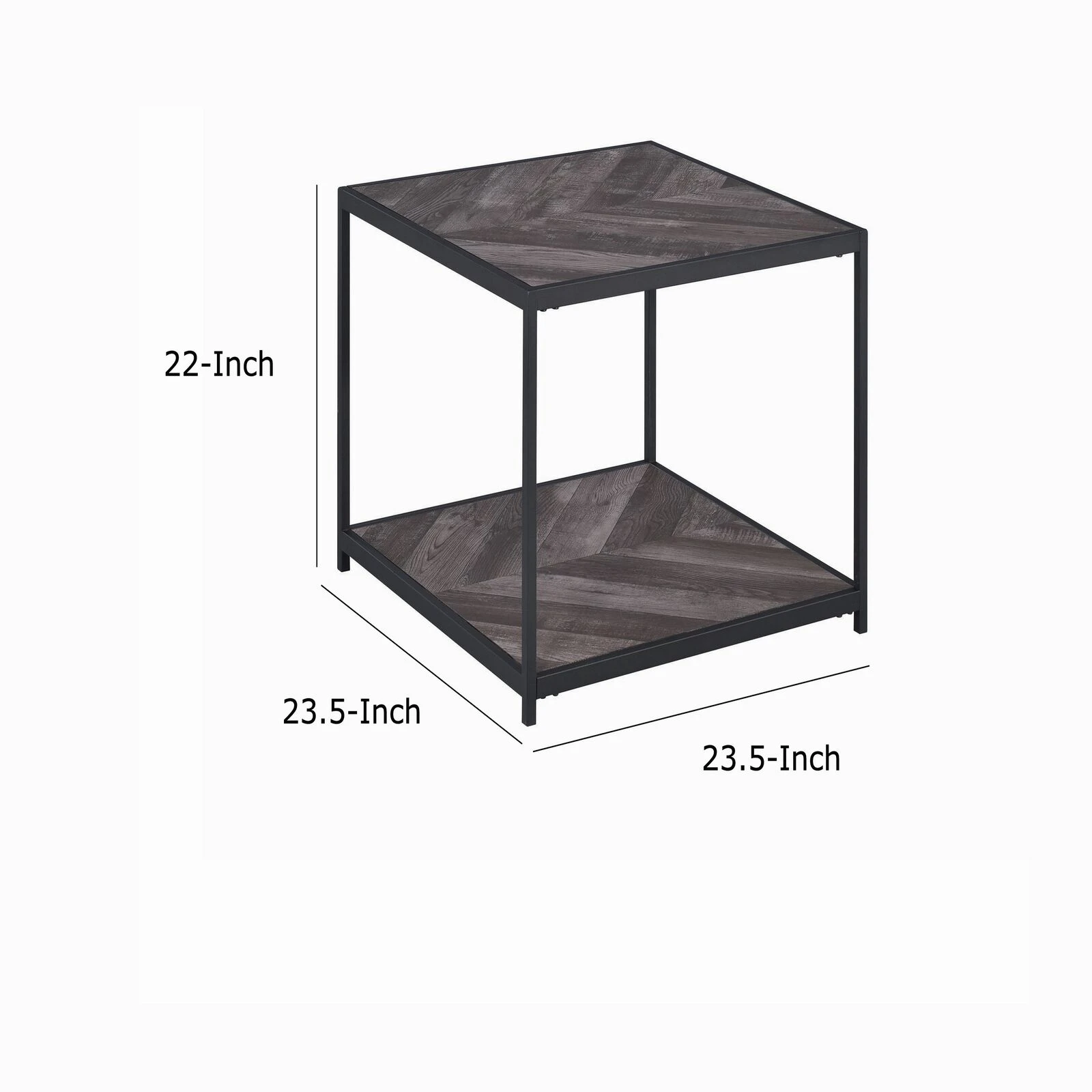 24 Inch Wood End Table, Classic, Herringbone, Square, Metal Frame, Gray-Benzara