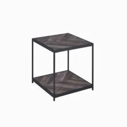 This cube shaped end table will bring a touch of style and elegance to your abode. The tubular metal frame construction provides rigidity to the table whereas the rustic gray herringbone pattern is tasked with aesthetics. The open bottom shelf acts as a space for storage for books or any other items and the top shelf can easily accommodate decorative items or table lamps. It will be a great piece of furniture when partnered with an arm chair or a bed.