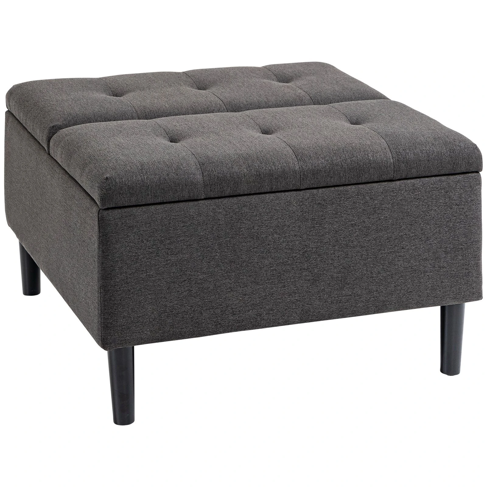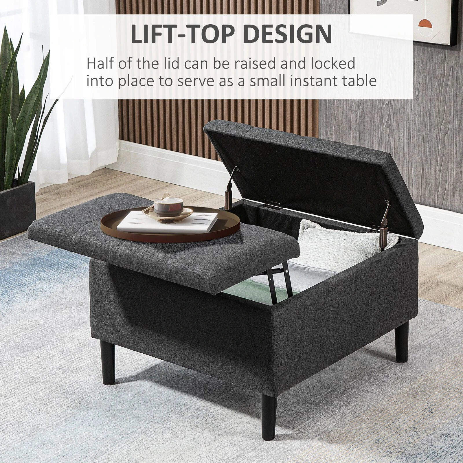 30″ Storage Ottoman, Tufted Fabric Upholstered Square Coffee Table with Lift Top, Accent Footrest Footstool for Living Room, Dark Grey