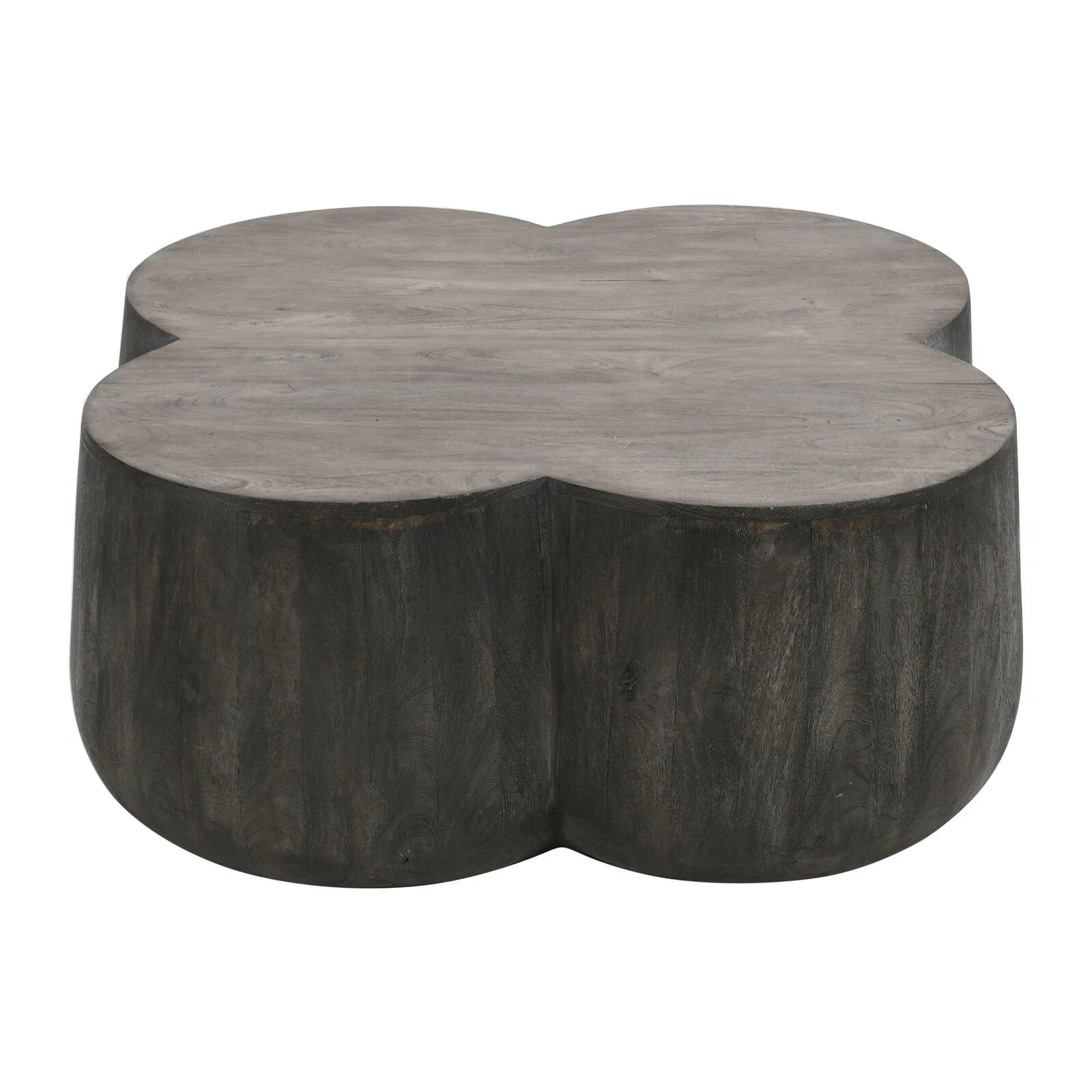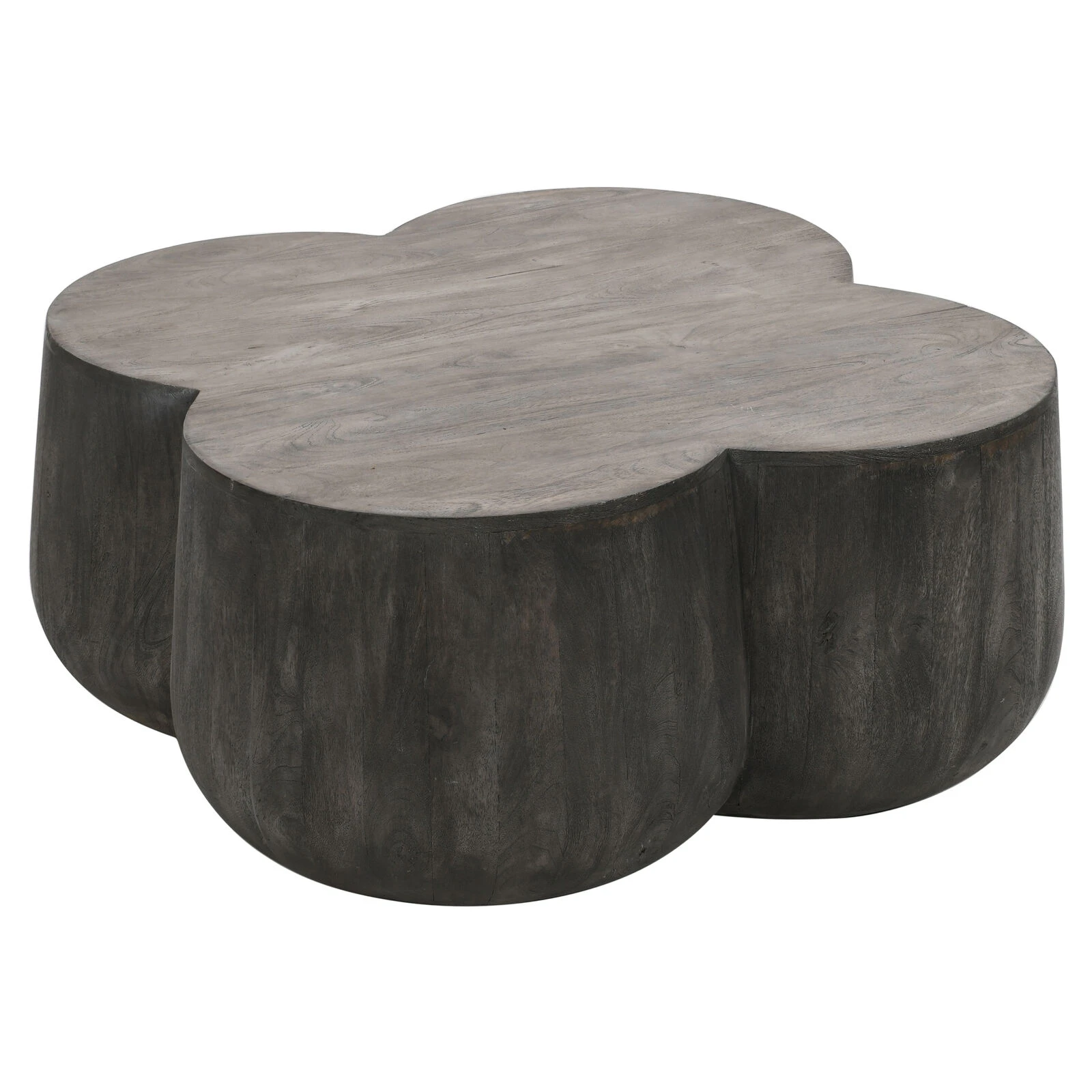 Modernistic in its aesthetic and gorgeously, artisanally designed, this uniquely styled wooden coffee table brings an evocative sense of charm and sophistication to any of your contemporary living spaces. Made with a premium grade mango wood frame and replicating a clover leaf design atop a drum shaped base, this piece is an ideal stage for drinks, decorative pieces, coffee table literature, and television remotes. Crafted with visually charming wood grain details for a piece that emanates effervescent style, this coffee table is particularly perfect as an accent for any cutting edge home.