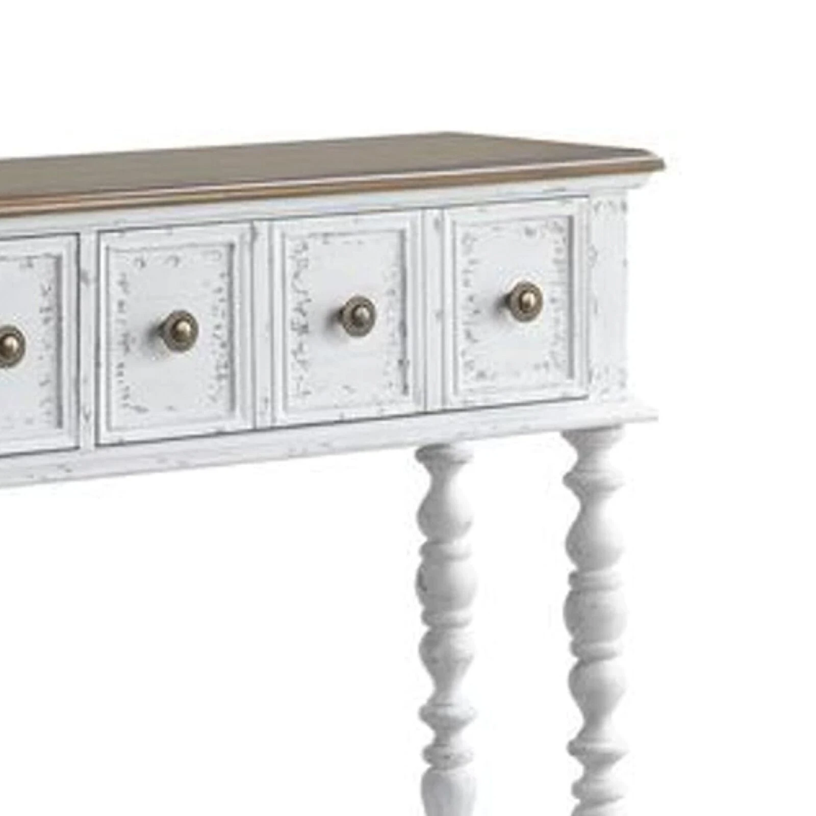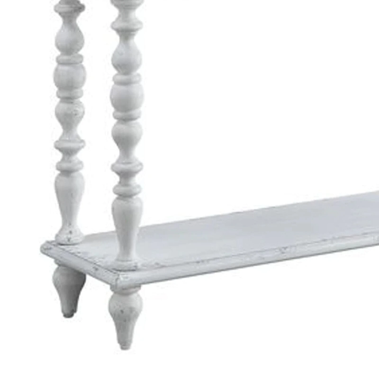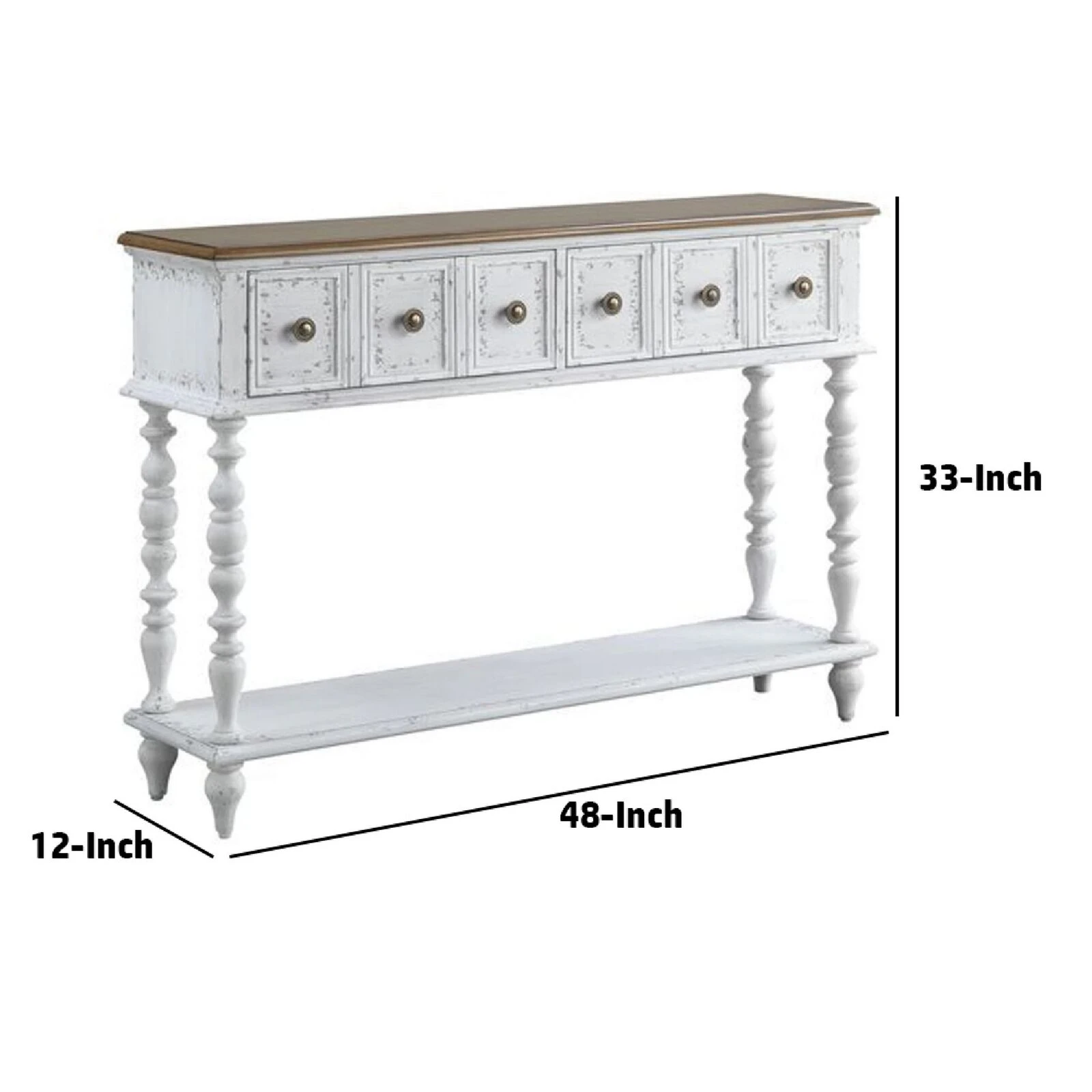 48 Inch 2 Drawer Console Table, Turned Legs, Distressed White-Benzara