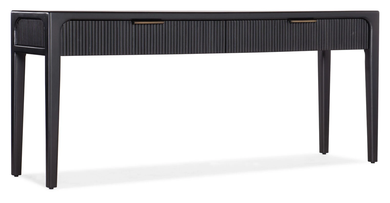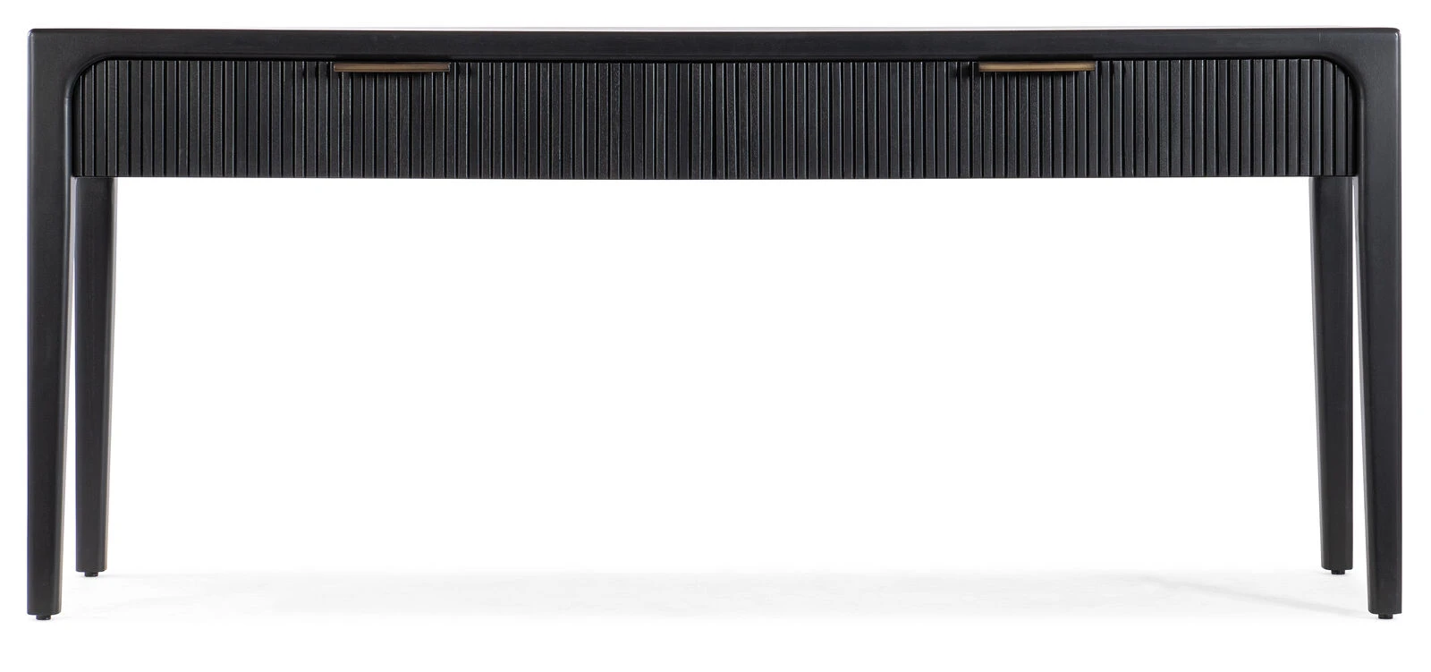 47 Inches Glass Top Console Table With Faux Stone Inlay, Silver-Benzara