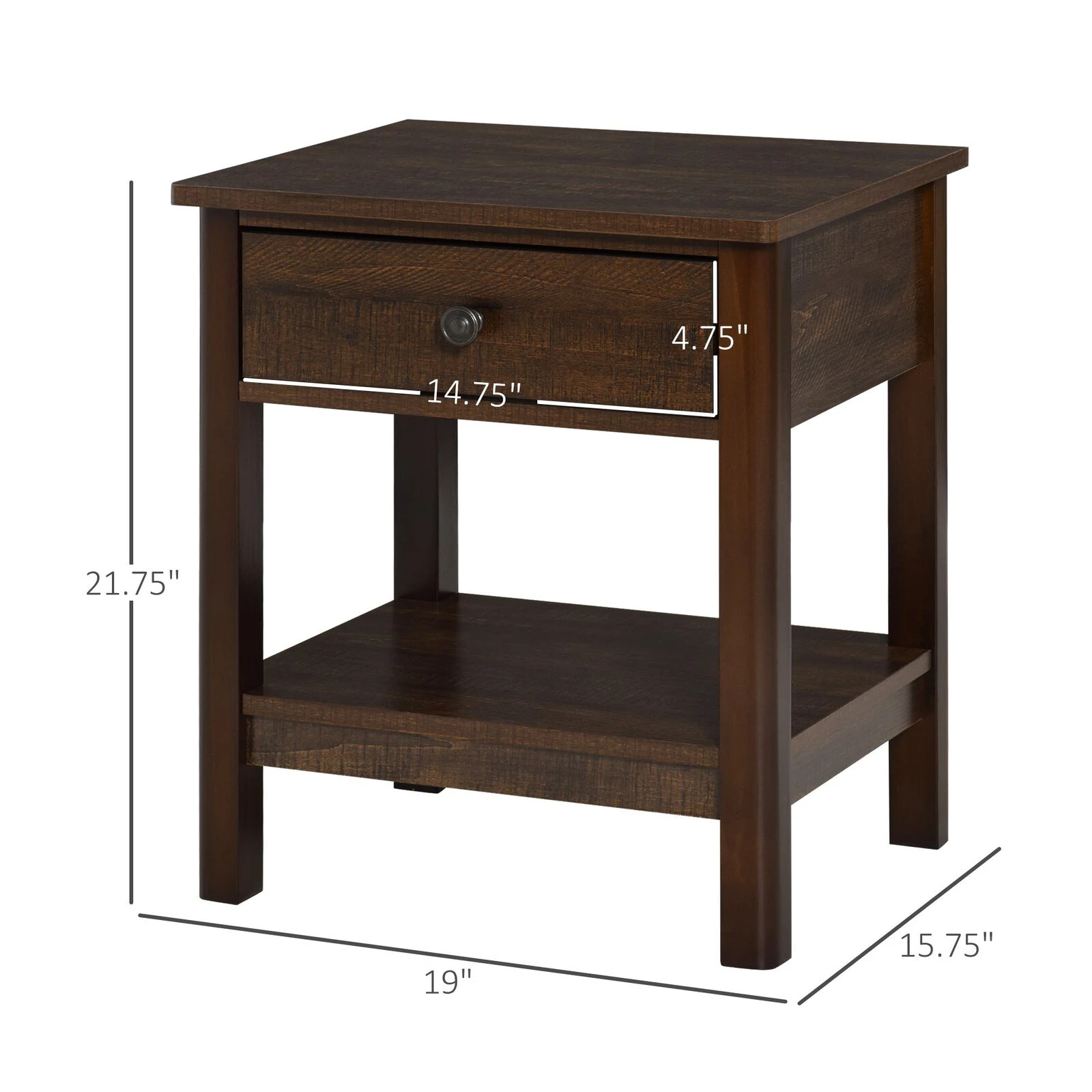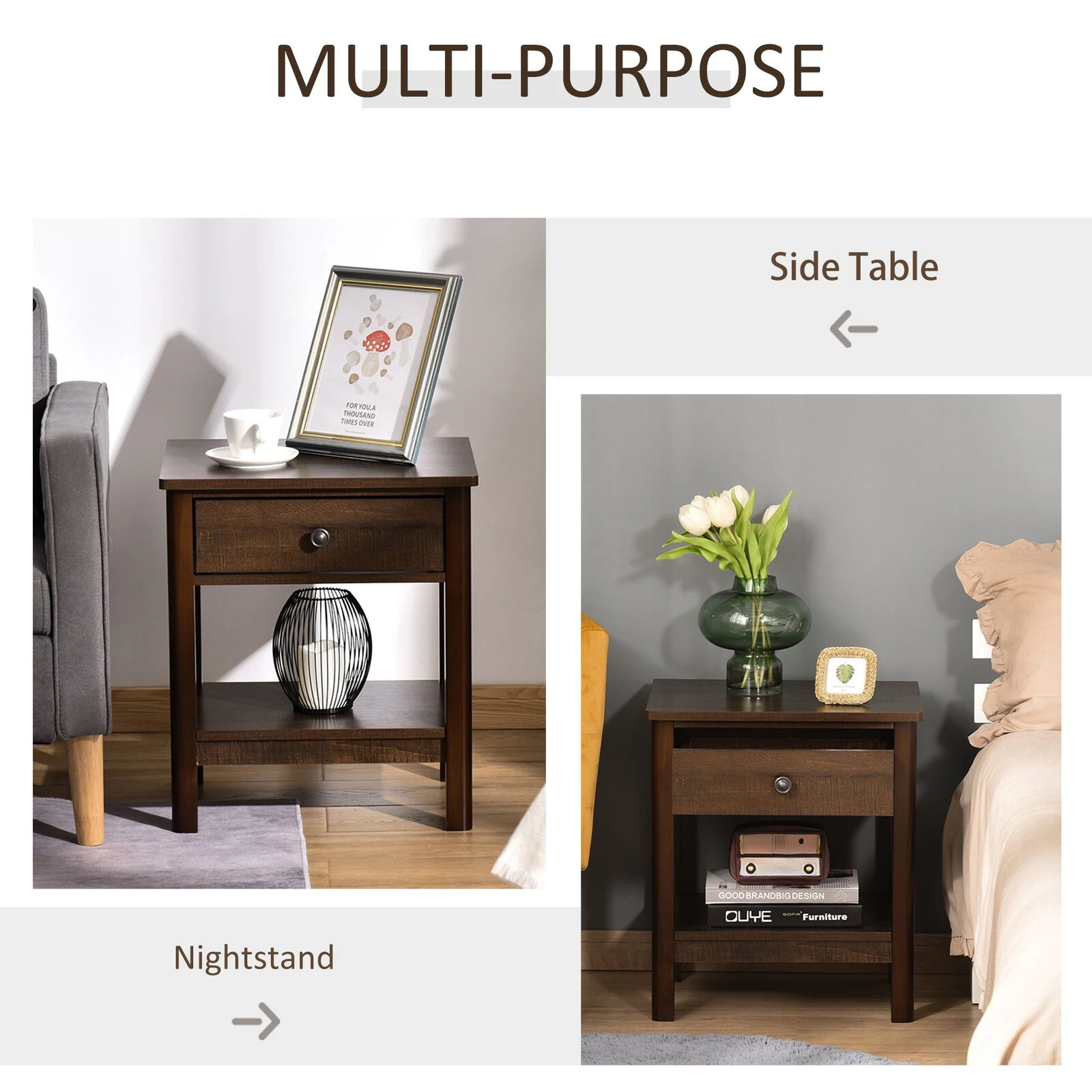 Bedside Night Stand with Drawer, Top and Bottom Shelf for Small Spaces, Dark Brown