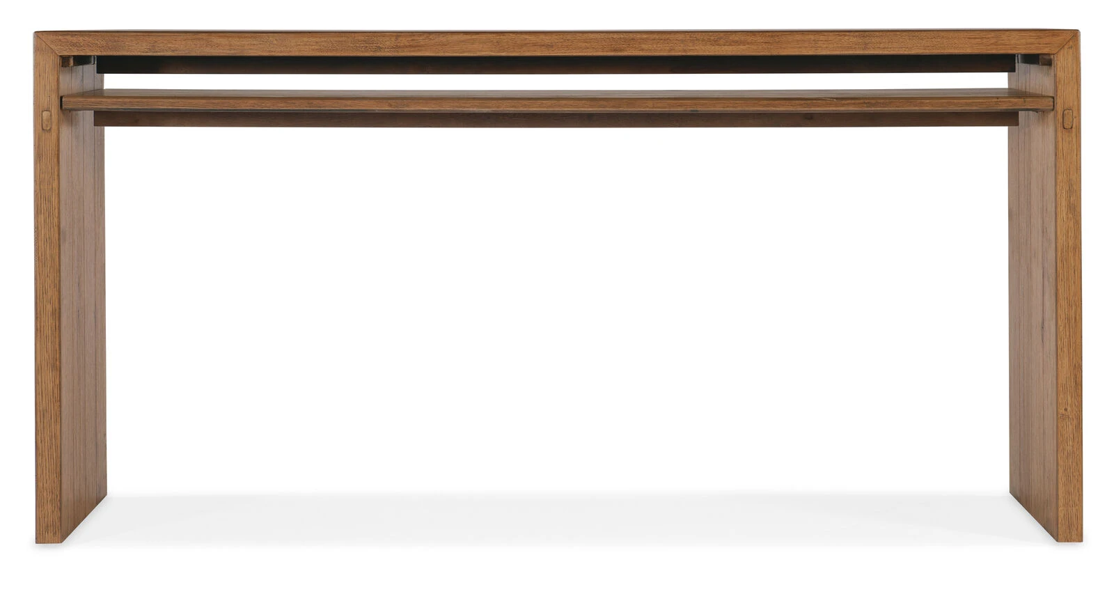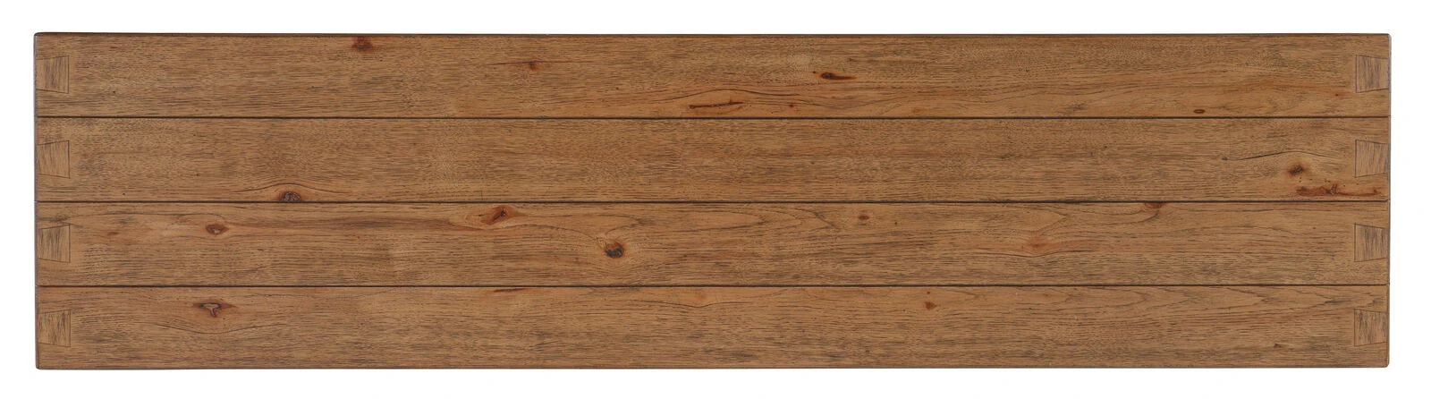 With a simple and straightforward silhouette that evokes the weight, heft and heritage of vintage beam construction, the Big Sky Console Table is crafted of Pecky Hickory Veneers with a solid-wood edged top. The Vintage Natural finish is warm and rustic, revealing the authentic knots and wood grain. Theres one fixed shelf that creates a small open area. Nailhead trim adds accent.