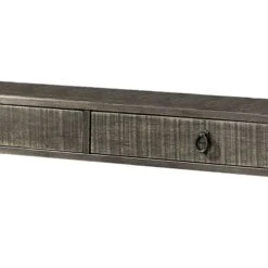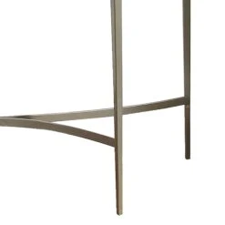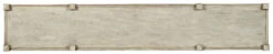 This stylish console combines eye-catching form with practical function. Clean lines and solid wood construction are beautifully highlighted by a warm alabaster finish, with subtly curving sides that reveal a burnished bronze, gesso patterned interior with a uniquely patterned surface. A lower glass shelf provides additional space for decor items and accessories.