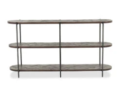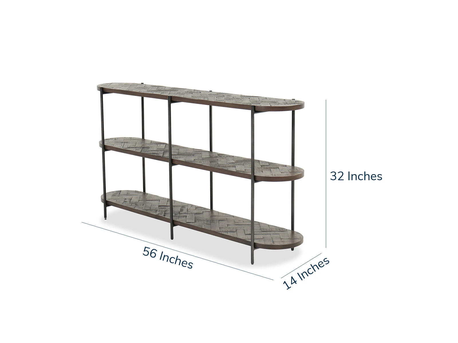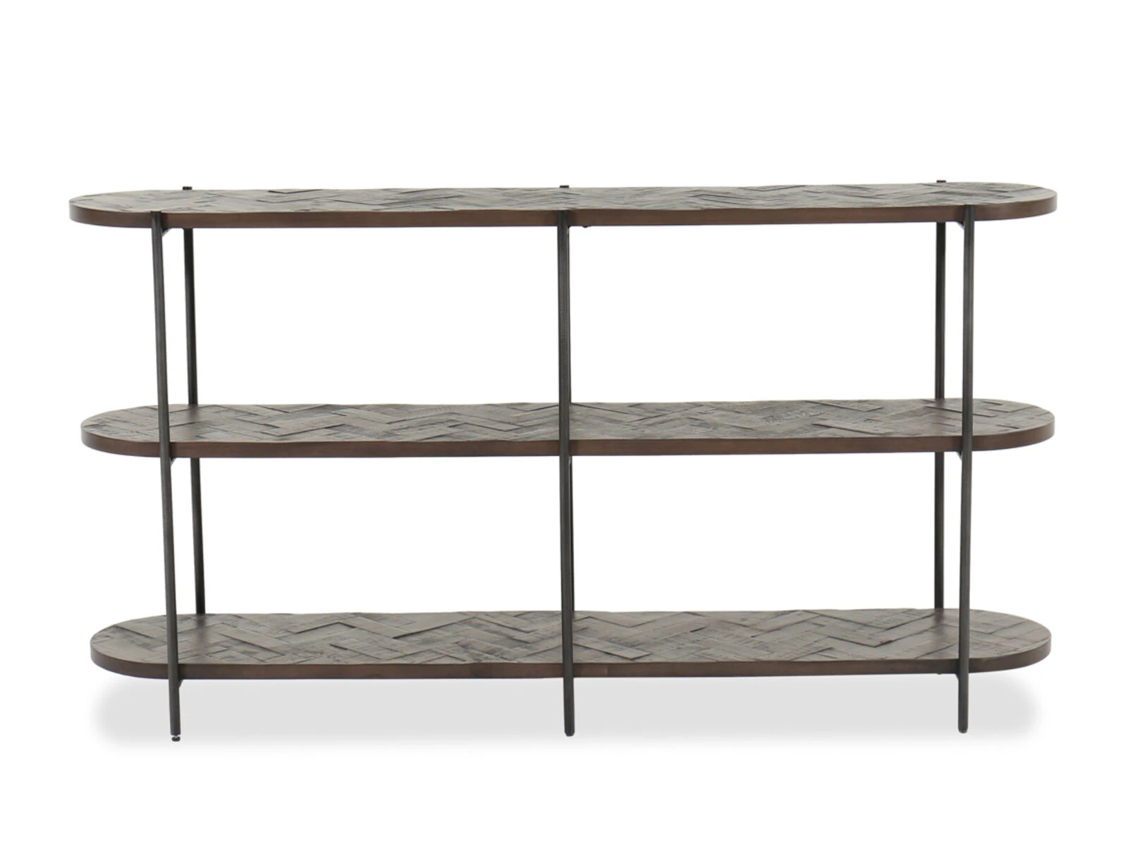 Spread a welcoming aura in your living room with the Commerce & Market Metal-Wood Console Table. This eclectic console table combines natural materials, with a White Travertine Stone top with screen-printed design and is set atop a forged black metal base to uplift its tribal flair.