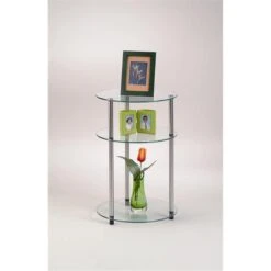 Designs2Go Classic Glass 3-Tier Round Table is the perfect complement to any living room décor. Featuring an open modern design that provides 3 spacious glass shelves for decoration collections or art objects. Surely will provide years of enjoyment