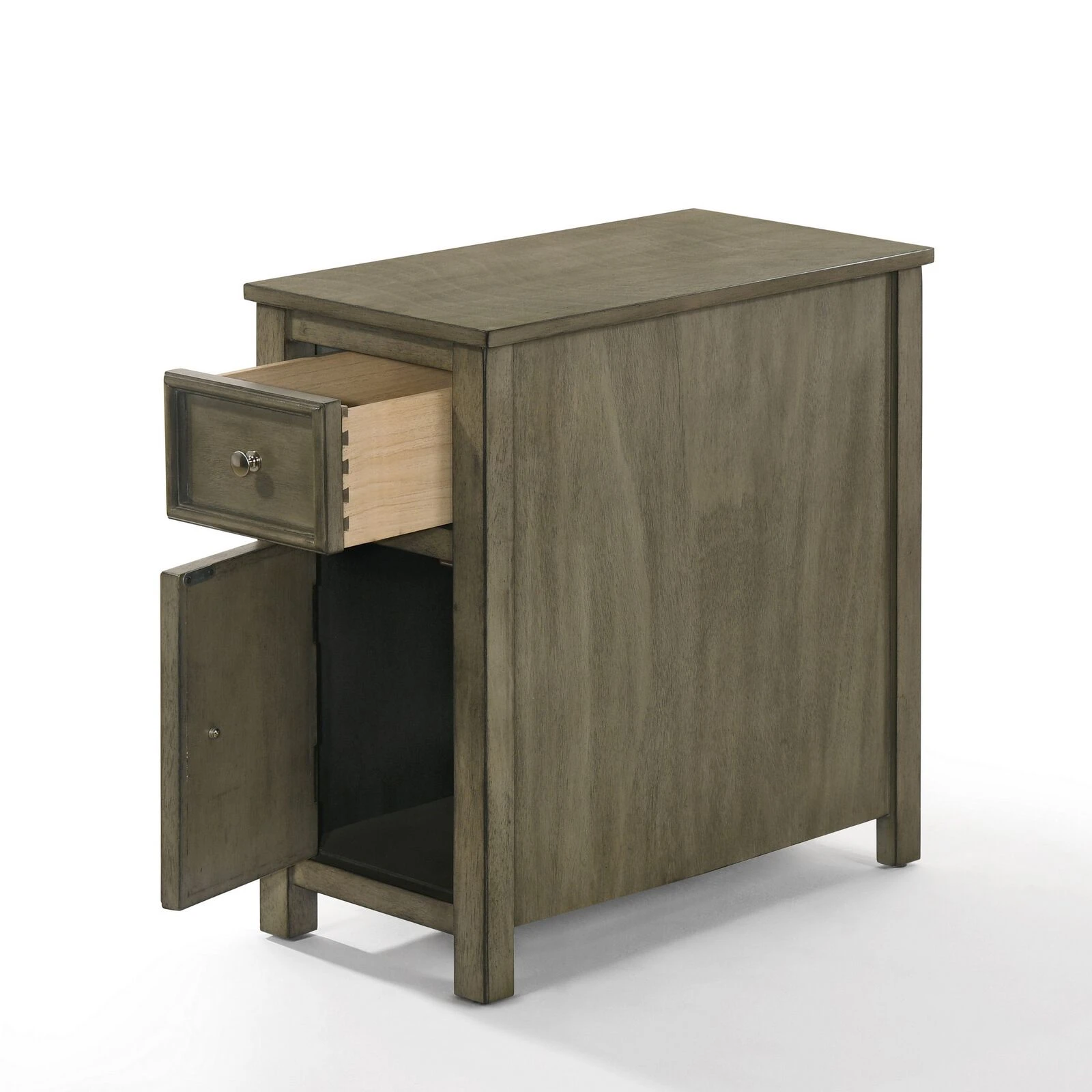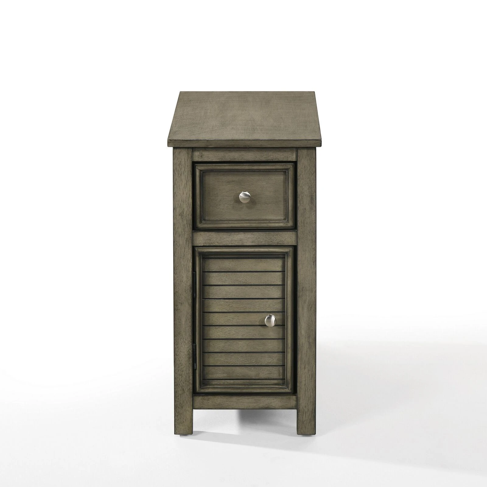 Artisanally crafted with an eye for homespun perfection, this side end table is perfect for imbuing your home with a sense of traditional sophistication and contemporary class. The durable wood frame comes in a warm gray finish while the shutter designed door at the front and gliding drawer above it provide excellent form and function to the piece. Check out our Dane collection for matching items.