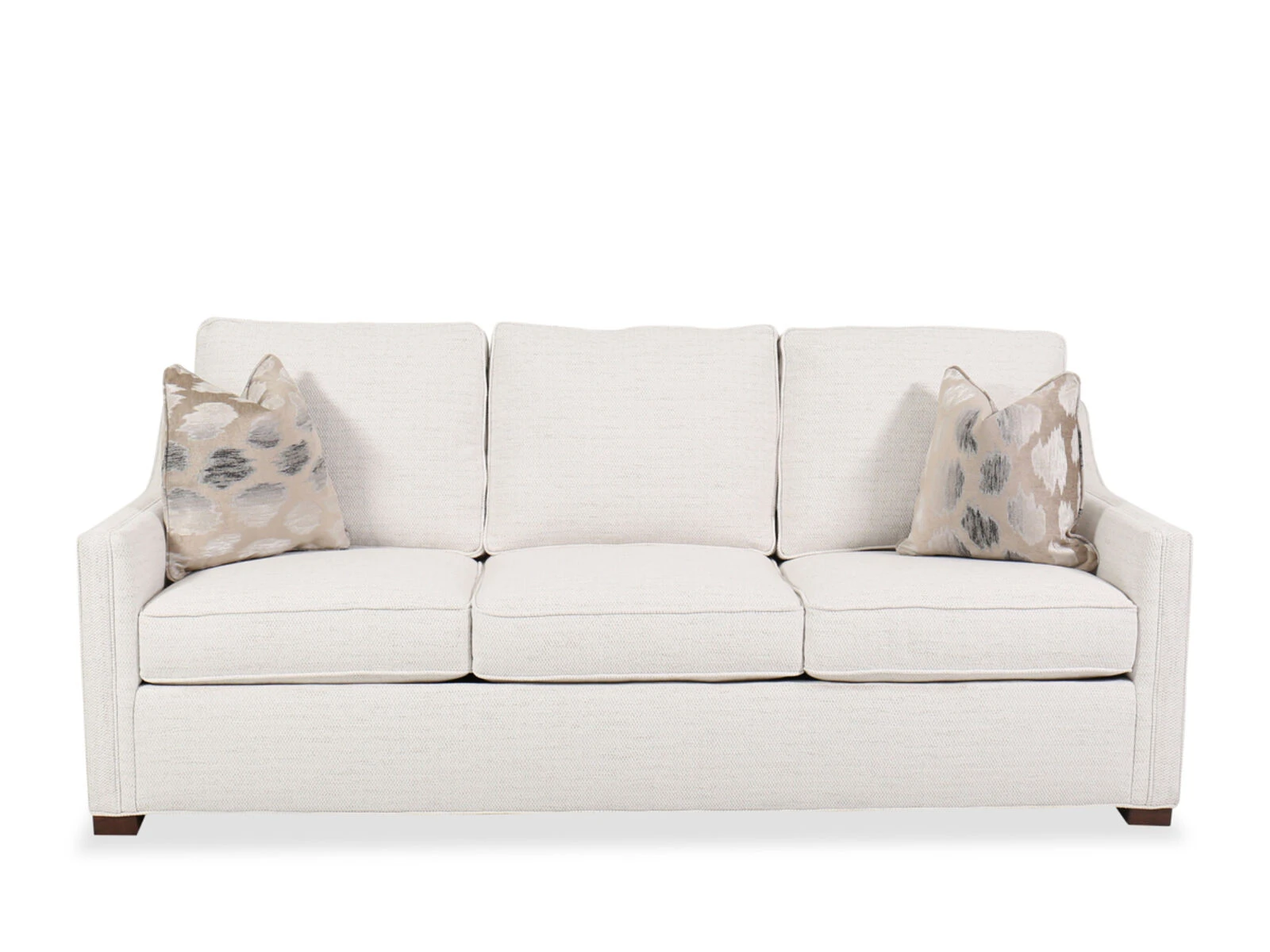 Sporting clean lines and neutral finishes, the Dekker 85″ Sofa lends itself as a chic geometrical statement in your transitional setting. With sleek track arms on either side, it holds you in comfort with its sumptuous box cushions and matching throw pillows for added support. Whether you need to curl up under a blanket, watch movies or television, or host an overnight guest, this sofa rises to the occasion.