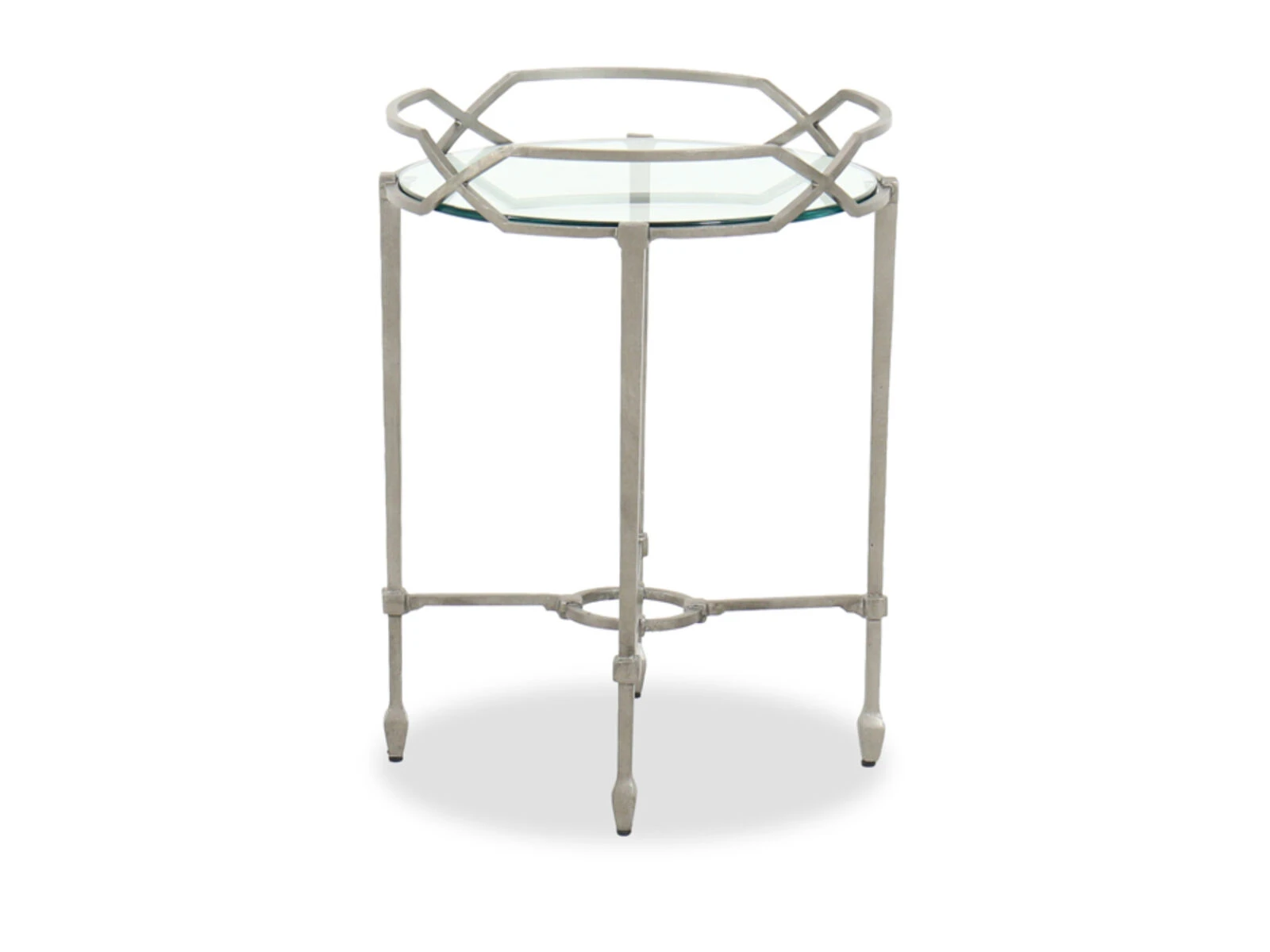 The Delaine Side Table is for people who want more than just a practical piece of furniture. Exuding glamorous metallic sheen, it boasts a tubular steel gallery rail top with X-shaped motifs resting on solid cast iron legs with steel stretchers. Round tempered glass top perfectly blends with the table’s aesthetics, while providing an easy-to-clean usable surface. Place it next to sofa or chair for displaying decorative items or holding beverages, remote and more.