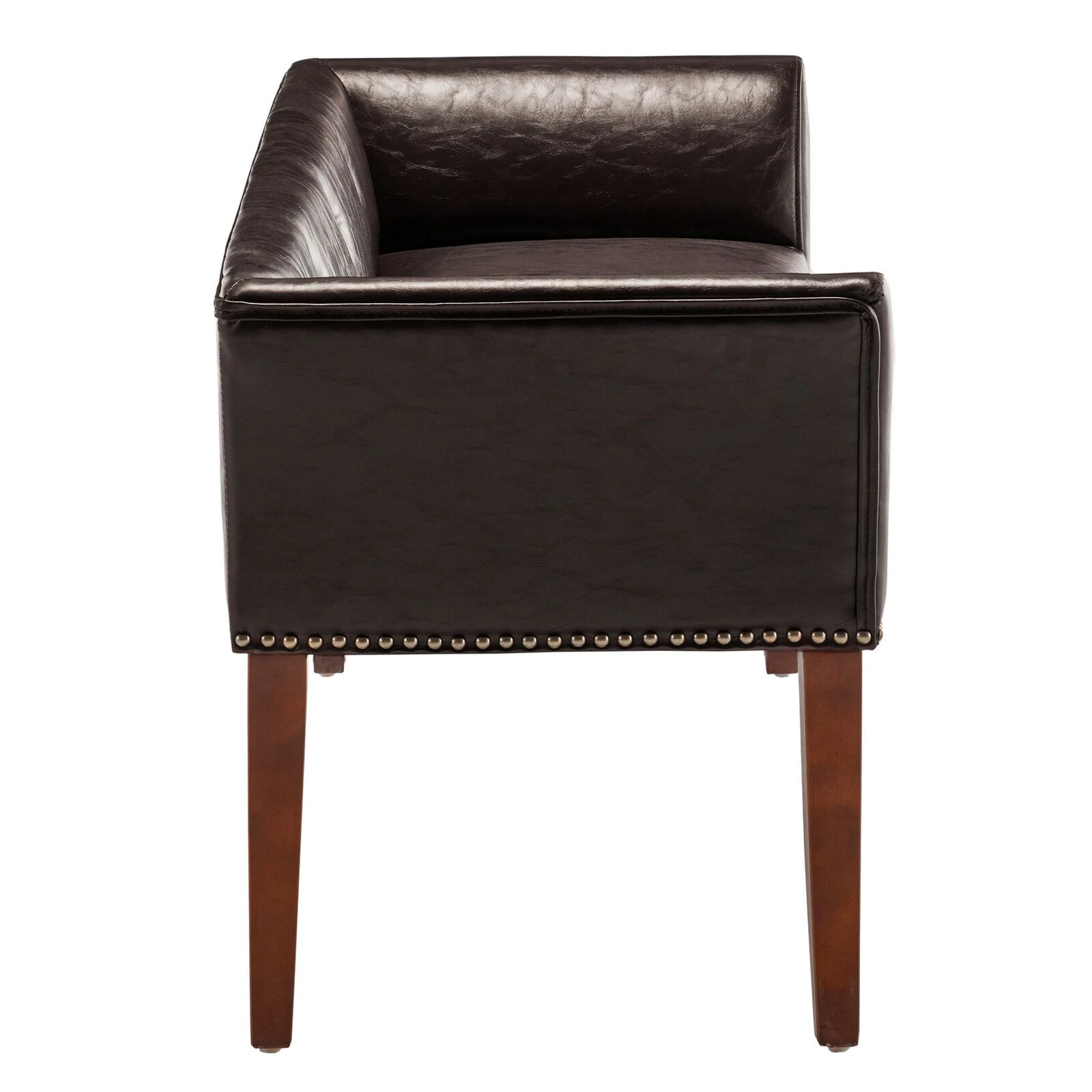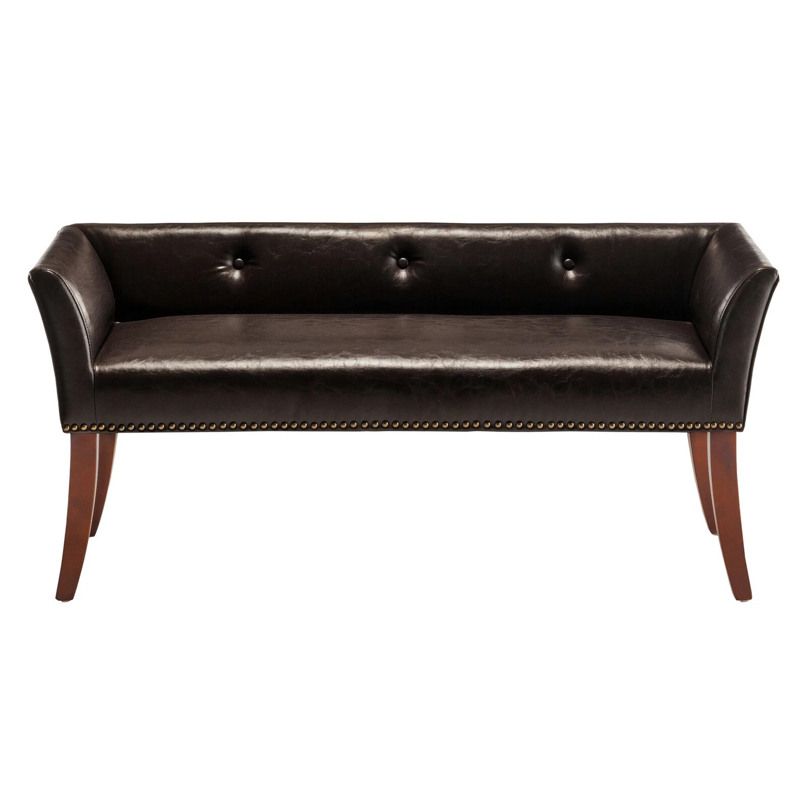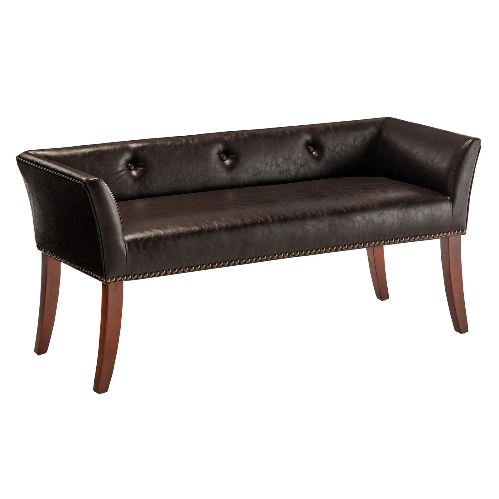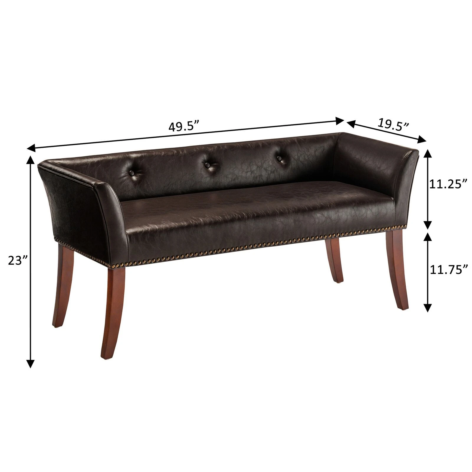 Decorate your home with the contemporary style of the Design4Comfort Gabriella Bench Ottoman by Convenience Concepts. Place this bench in the entryway to put on your shoes or display in the bedroom as a beautiful accent piece. Elegant armrests, fine stitching, and the sleek tufted backrest make for the perfect amount of luxury and sophistication in any room. This transitional piece is upholstered in a detailed luxurious faux leather, styled with beautiful nailhead trim, and filled with high-density padded foam cushions for maximum comfort. The large frame is engineered from pine wood while the smooth sturdy espresso legs are built from solid rubberwood. Assembly is very simple with this unique unit arriving almost fully assembled with only the legs needing to be attached. With two luxe finishes to choose from, you are sure to find a Design4Comfort Gabriella Bench Ottoman to coordinate with your home décor.