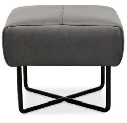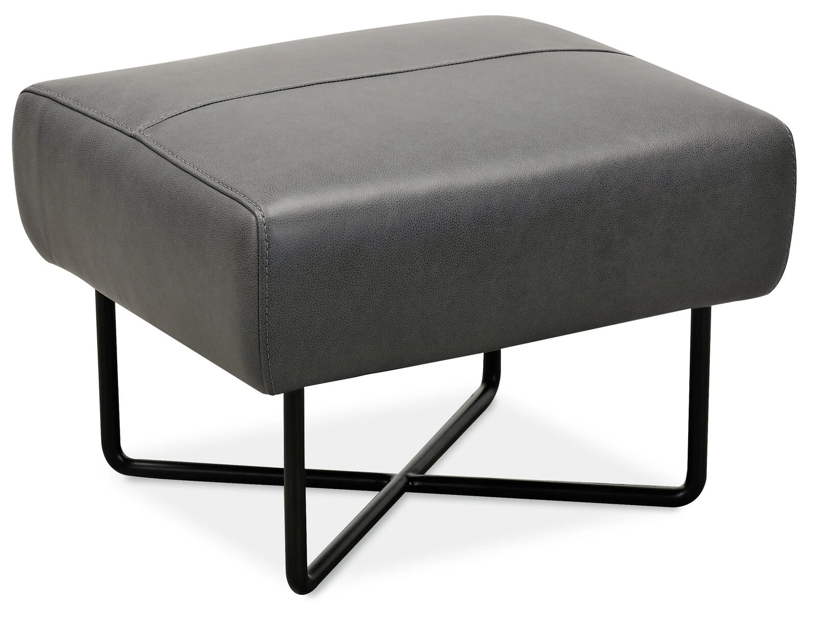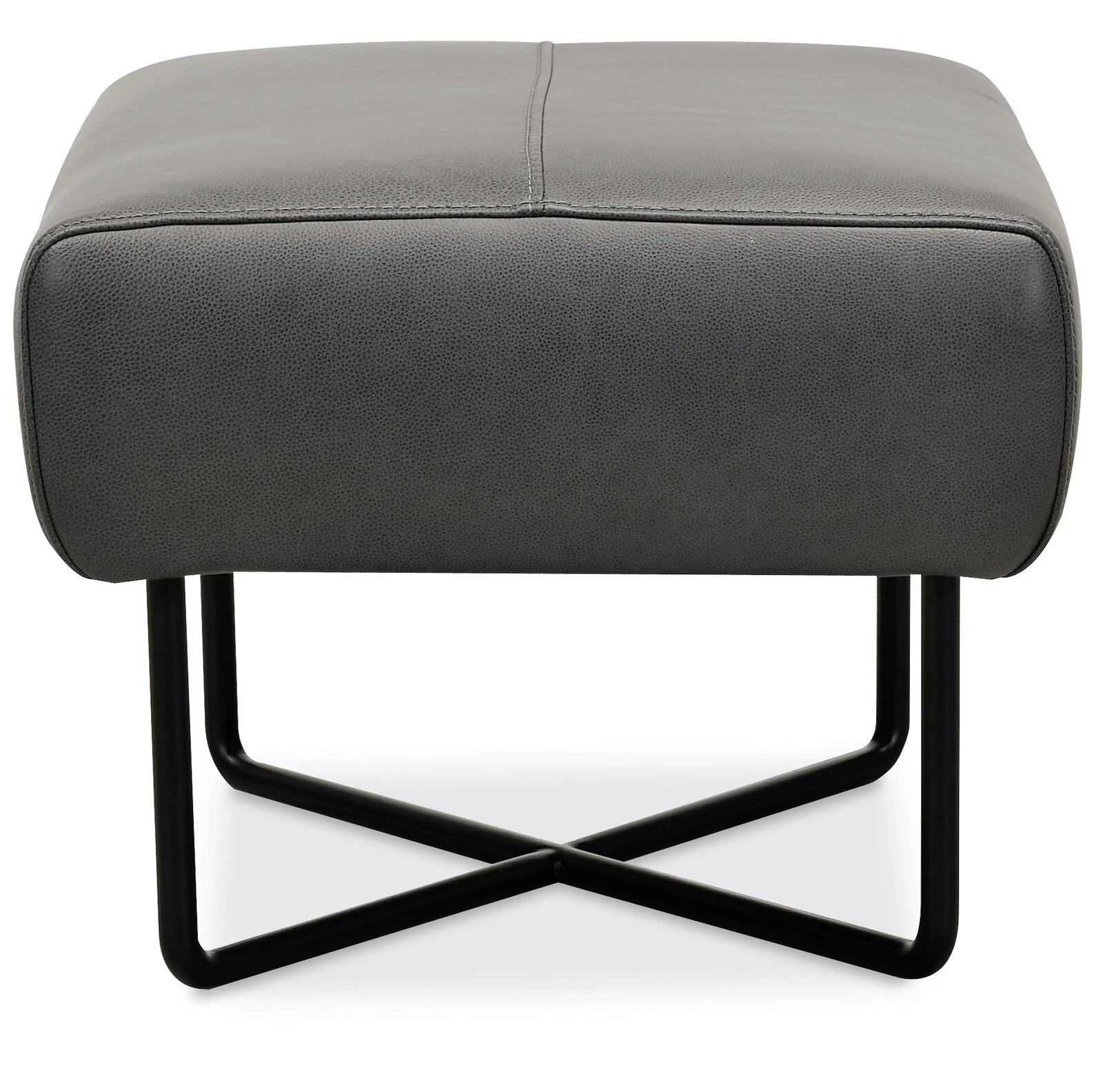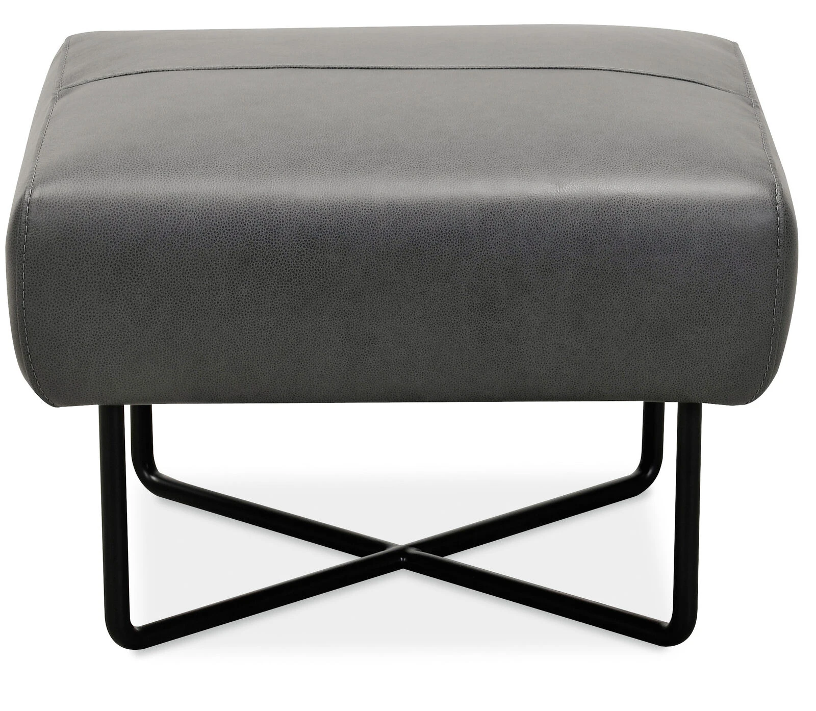 A sculptured silhouette distinguishes the sleek modern Efron Ottoman. Featuring an interlocking “X” motif metal base, the ottoman is upholstered in the semi-aniline top grain Rangers Gravel leather and accented with top stitch detailing.