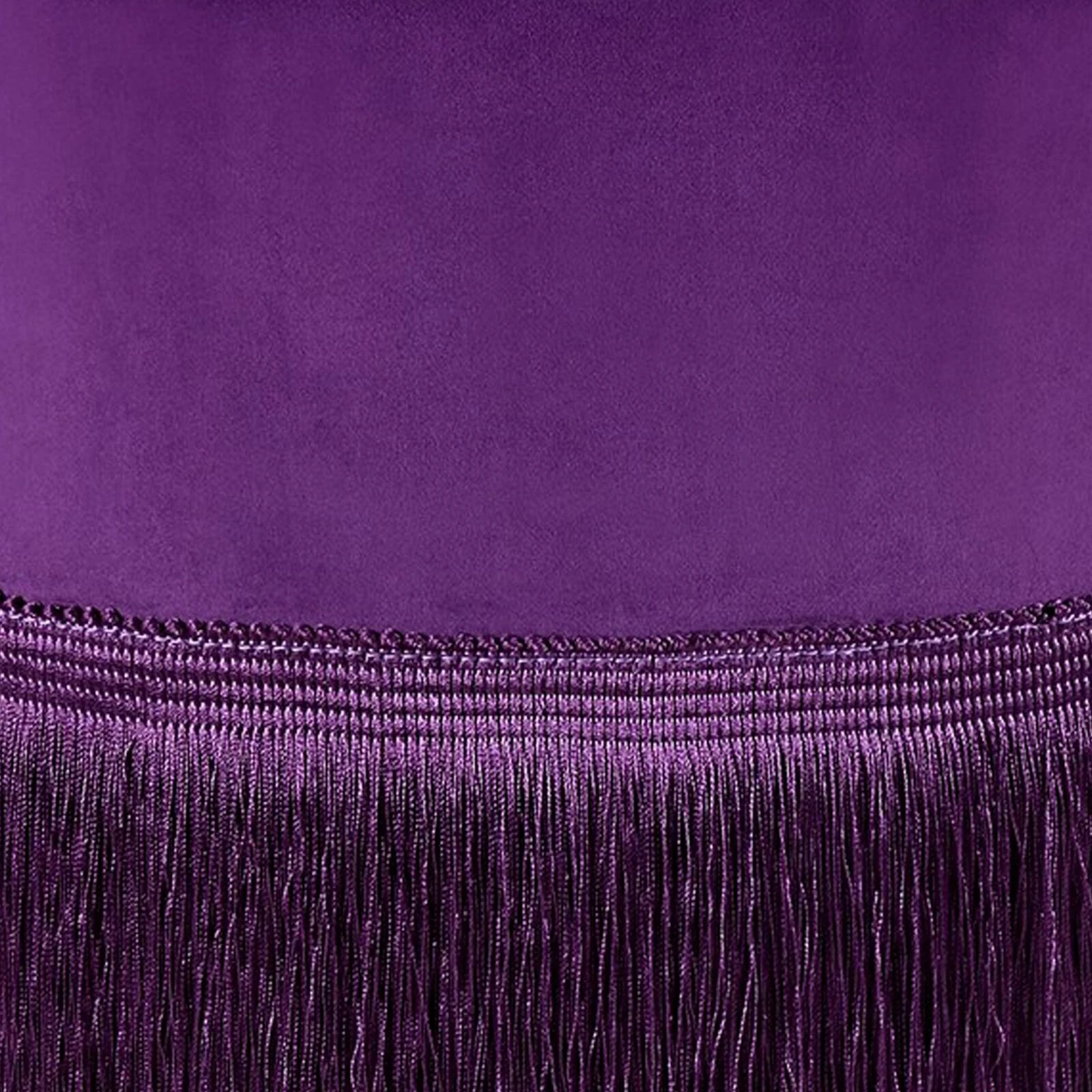 Add a glamorous accent to any space with the inclusion of this stunning round Ottoman in your home. It features a sturdy wooden frame that is covered by the purple velvet fabric and fringe detail which is soft and gives an expensive look. The metal base provide ample support, this piece is perfect for extra seating or a comfy place to rest your legs.