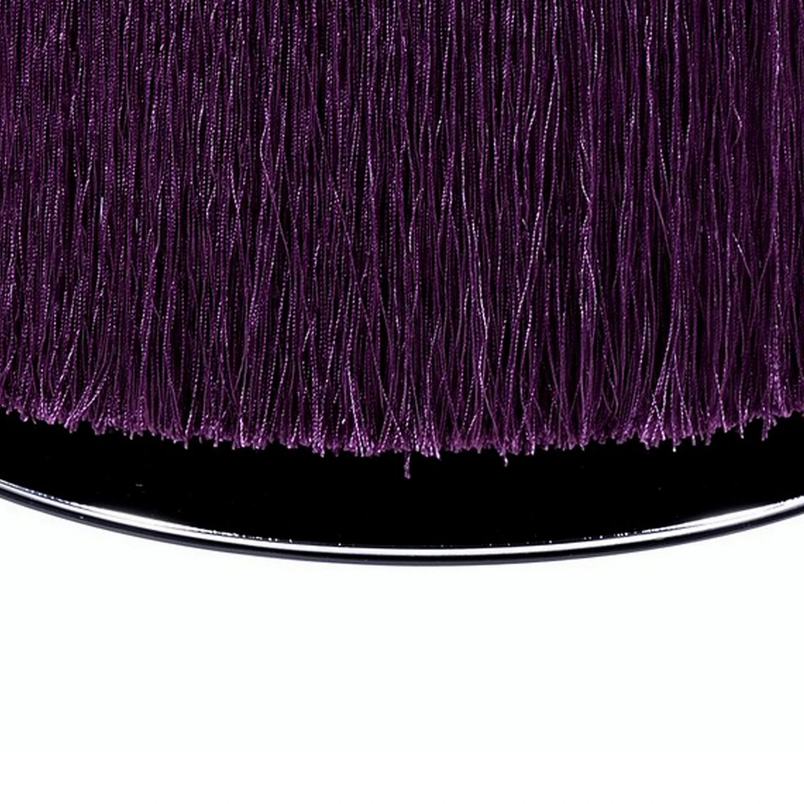 Fabric Upholstered Round Ottoman with Fringes and Metal Base, Purple- Benzara