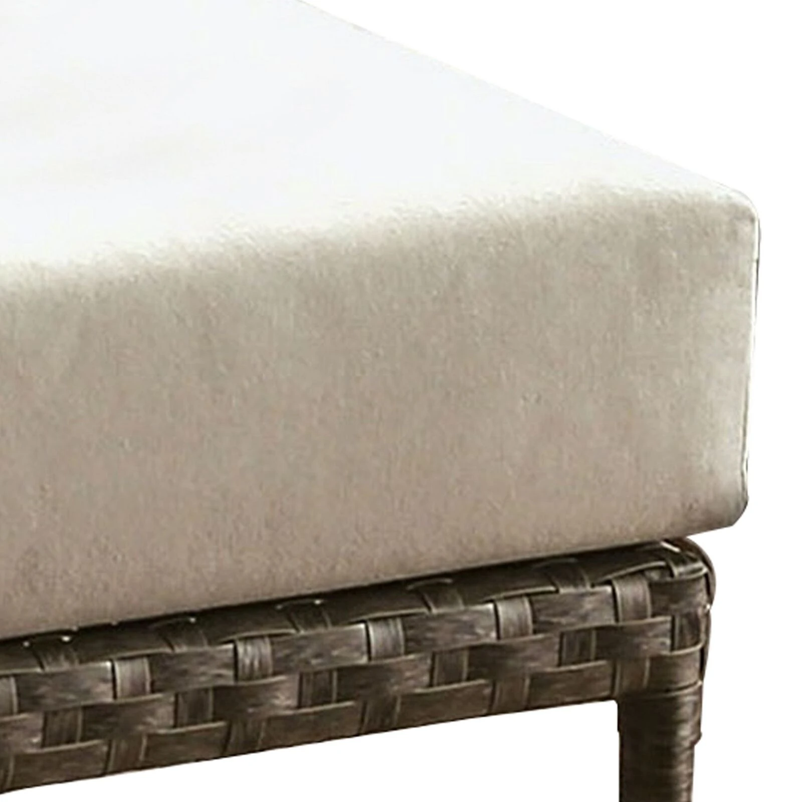 Faux Wicker Patio Ottoman with Fabric Box Cushion, Gray and Beige-Benzara