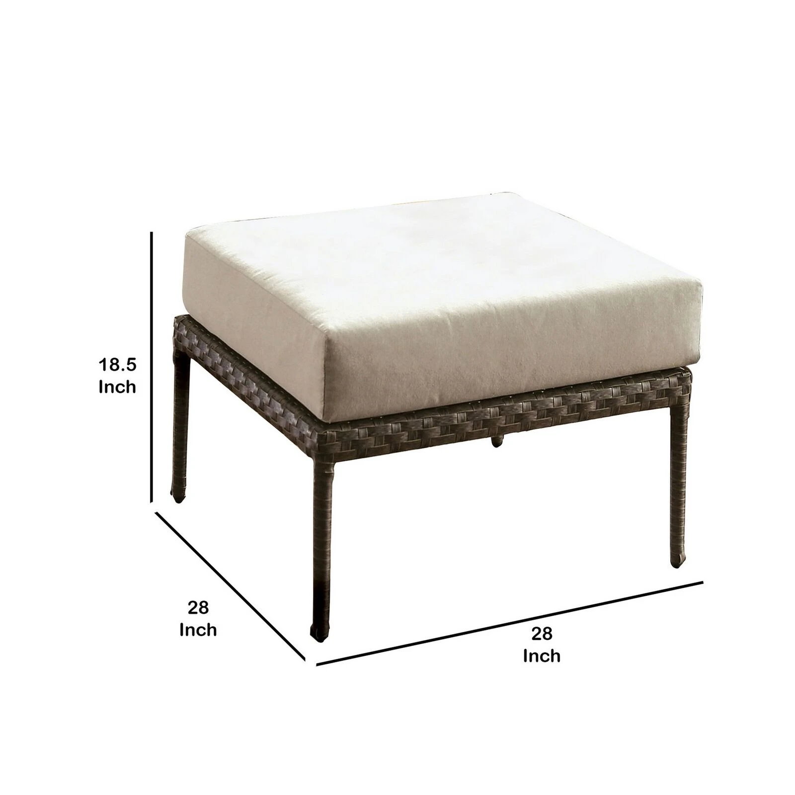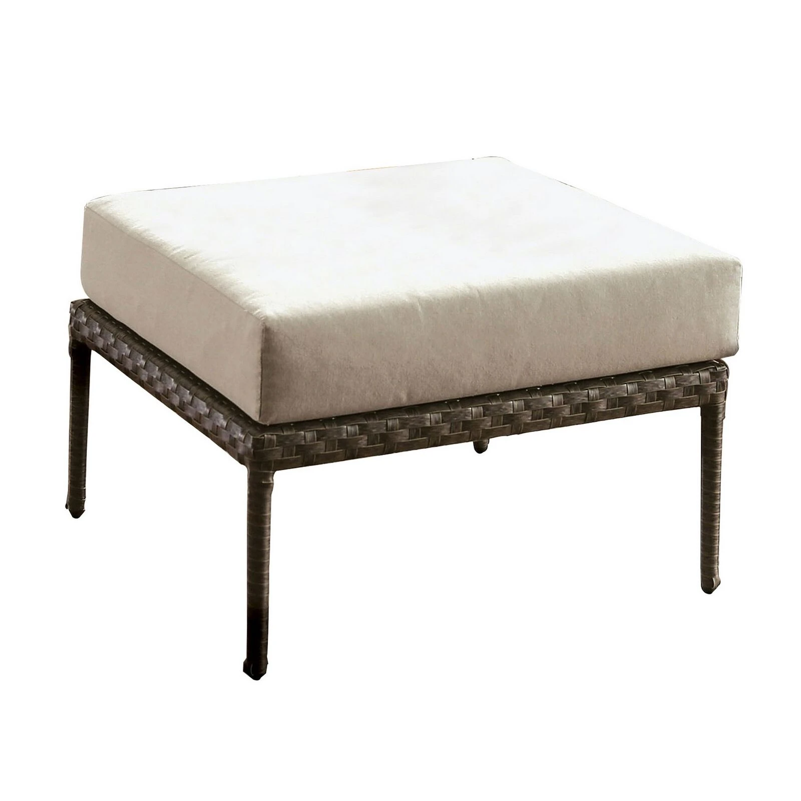 Relax in comfort and style with the introduction of this patio ottoman in your patio, porch or garden. It features a comfortable box cushion seat with foam inside in beige fabric with faux wicker wrapped aluminum frame that adds durability with style. This stunning piece will turn any outdoor space into your new relaxing retreat.