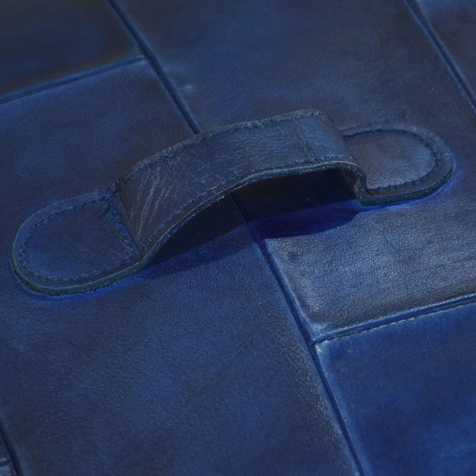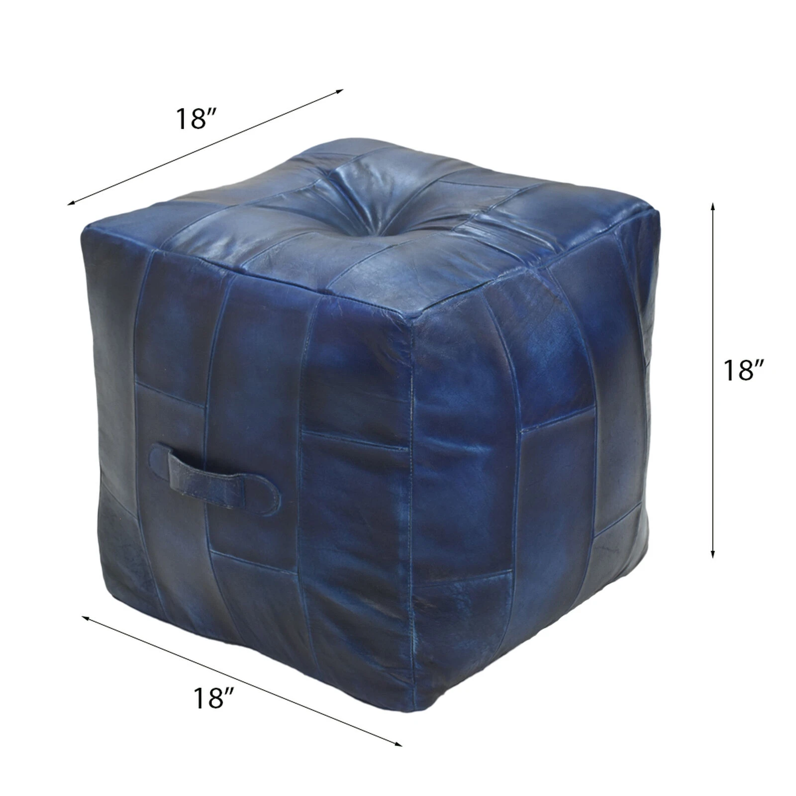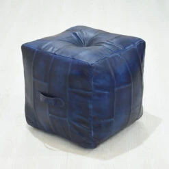 Geometric Handmade Leather Square Pouf 18″x18″x18″ (Recycled Foam with Fibre Fill) Vintage Blue Color MABBBACPF25 BBH Homes