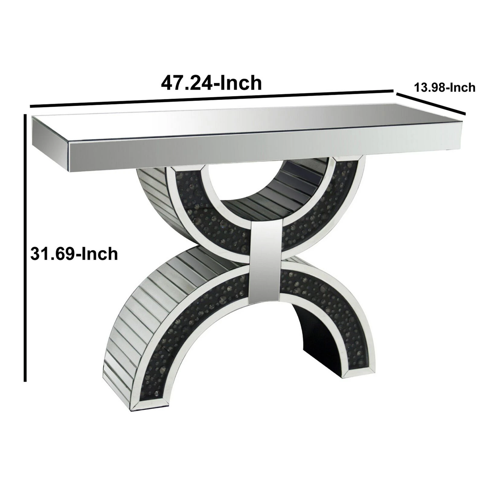 Wood and Mirror Console Table with Geometric Style Base, Clear and Black