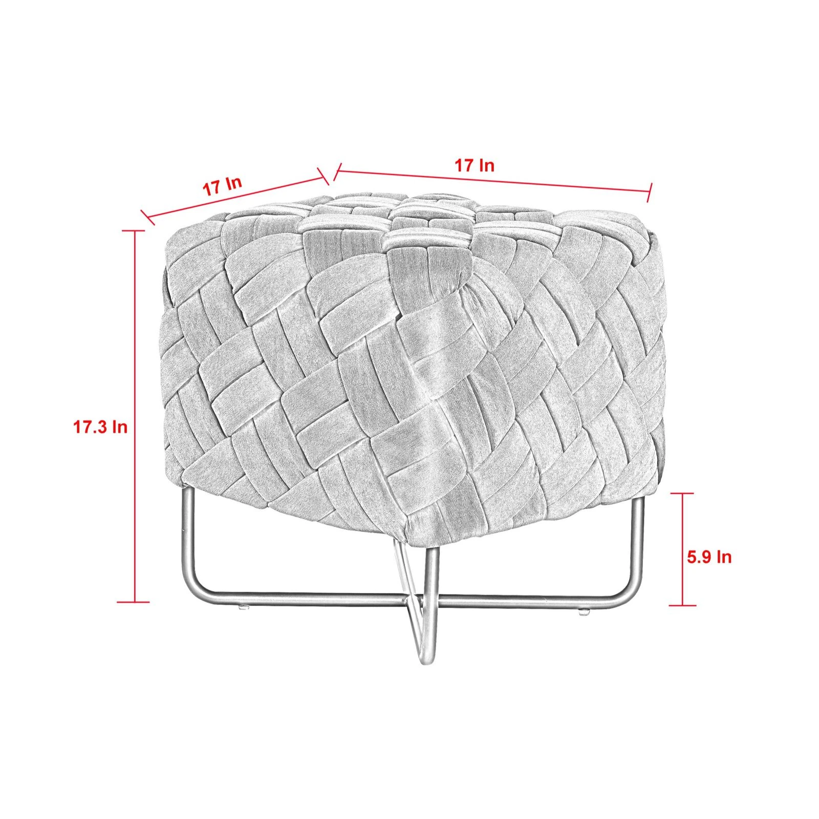 Optimize your space and add some charm to your room with the 17″ cream white velvet and black cube ottoman. Add chic style to your space with this fun cube that not only looks cool but can be a great foot rest or extra seat when needed. Expertly upholstered with padding and soft velvet in a solid color pattern, this ottoman is as comfortable as it is good looking. Easy to blend into most any room, a ottoman is a way to add a good looking accent to your space that can also be practical and useful. . 17.3″ H x 17″ W x 17″ D