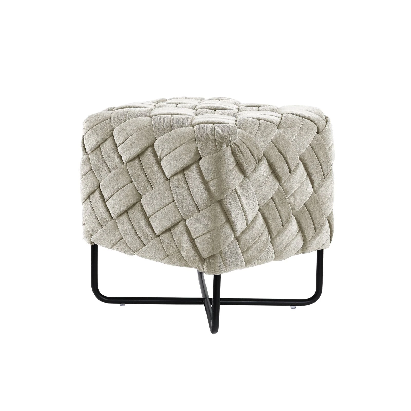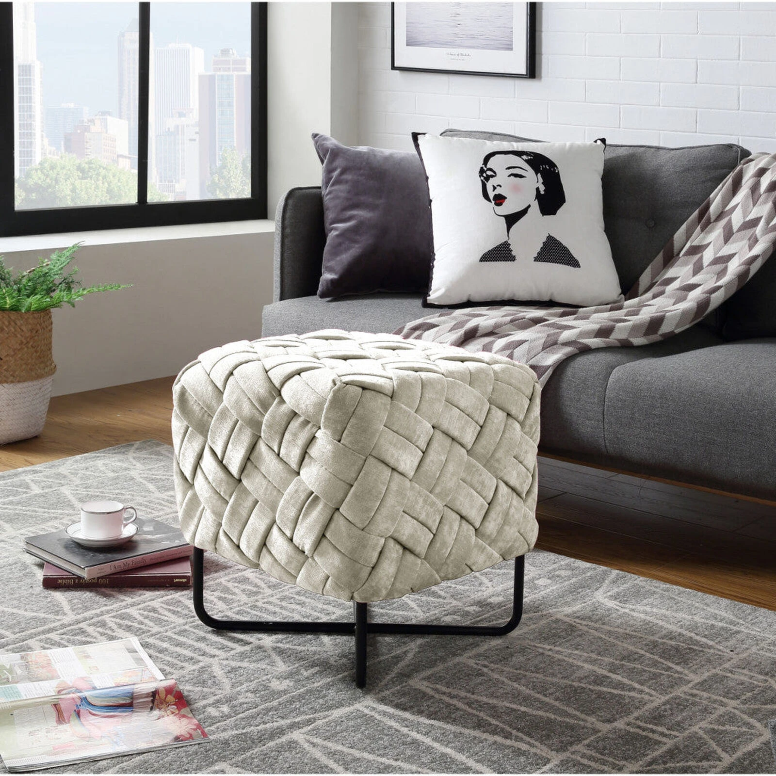 Homezia 17″ Cream White Velvet And Black Cube Ottoman