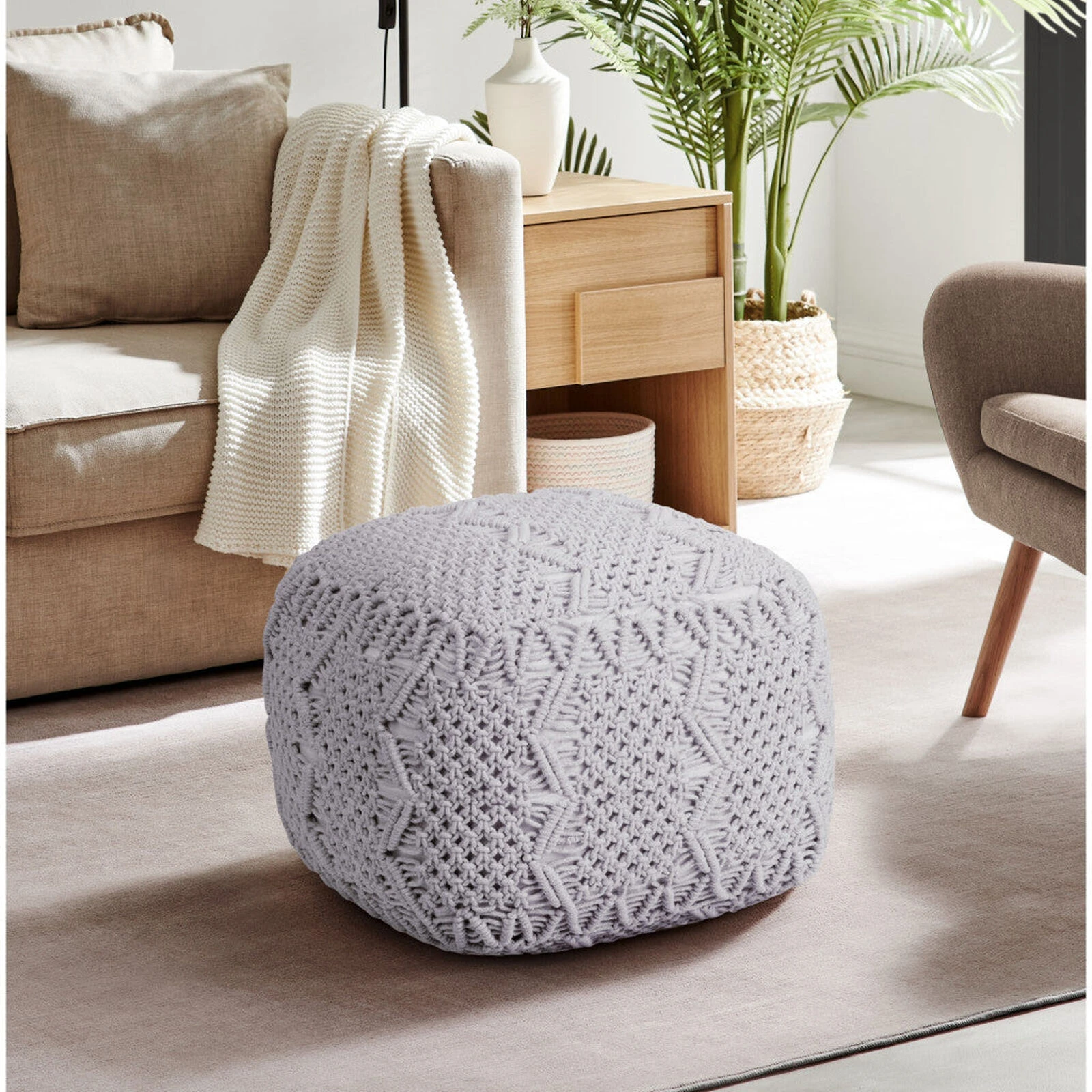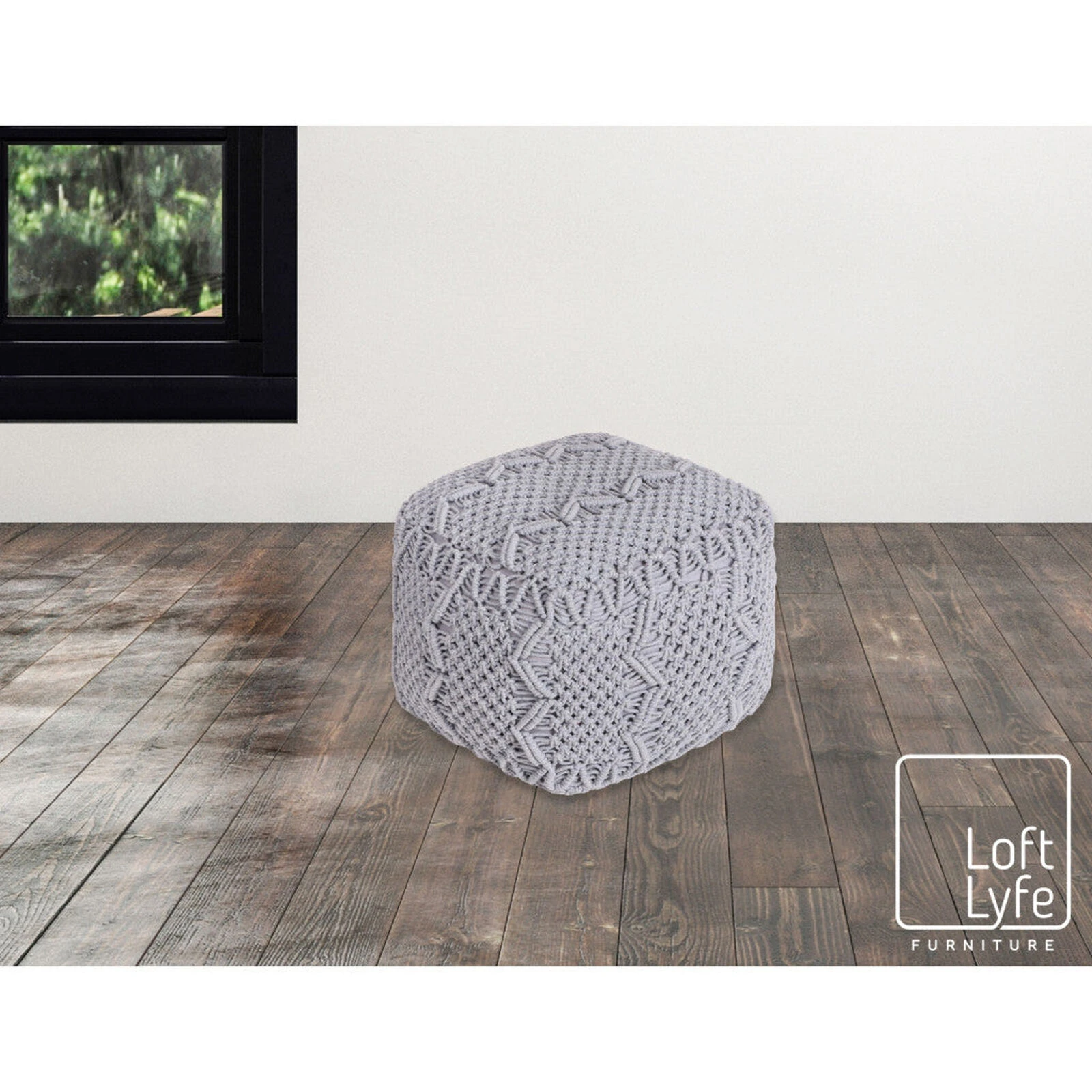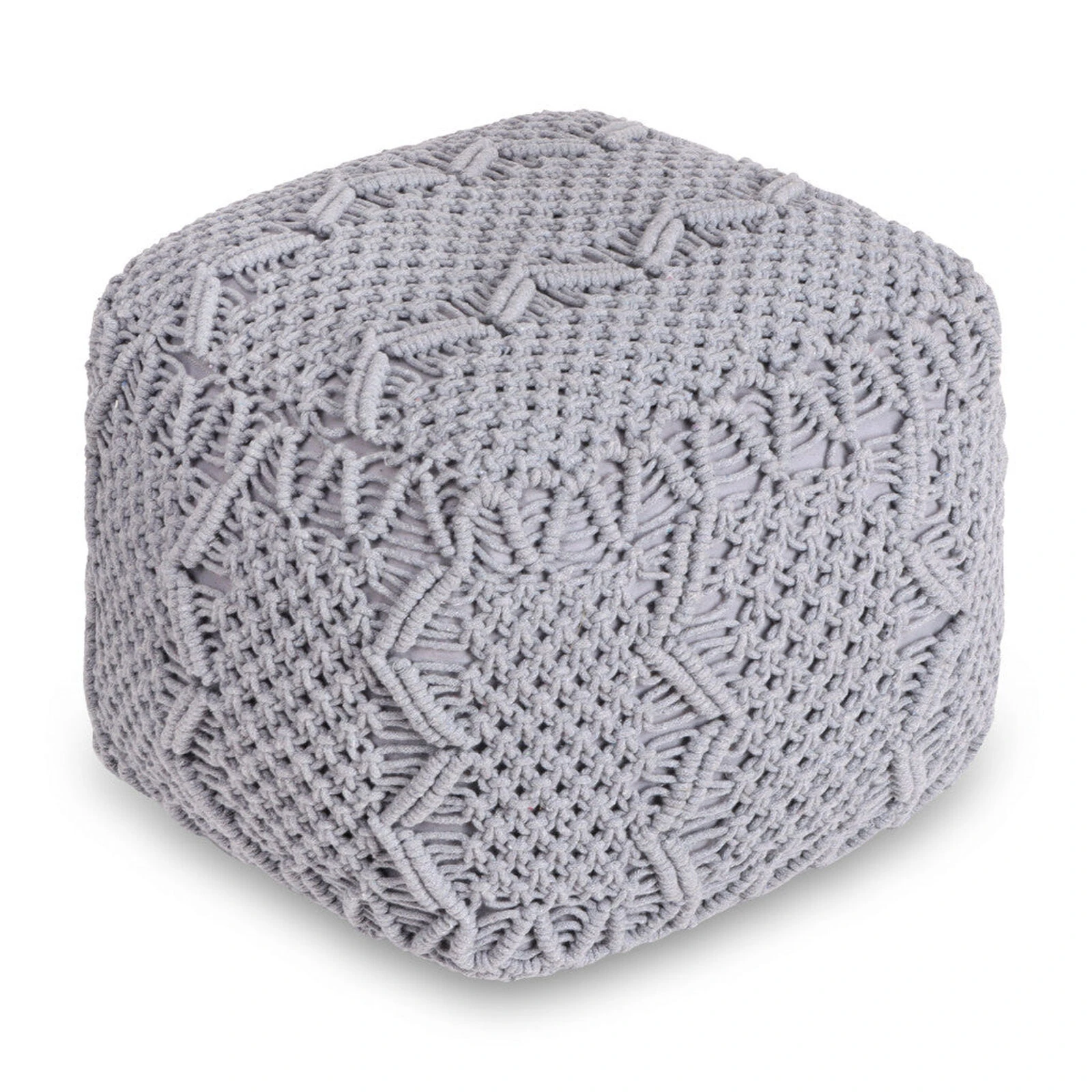 Homezia 18″ Light Grey Cotton Blend Pouf Cube Ottoman