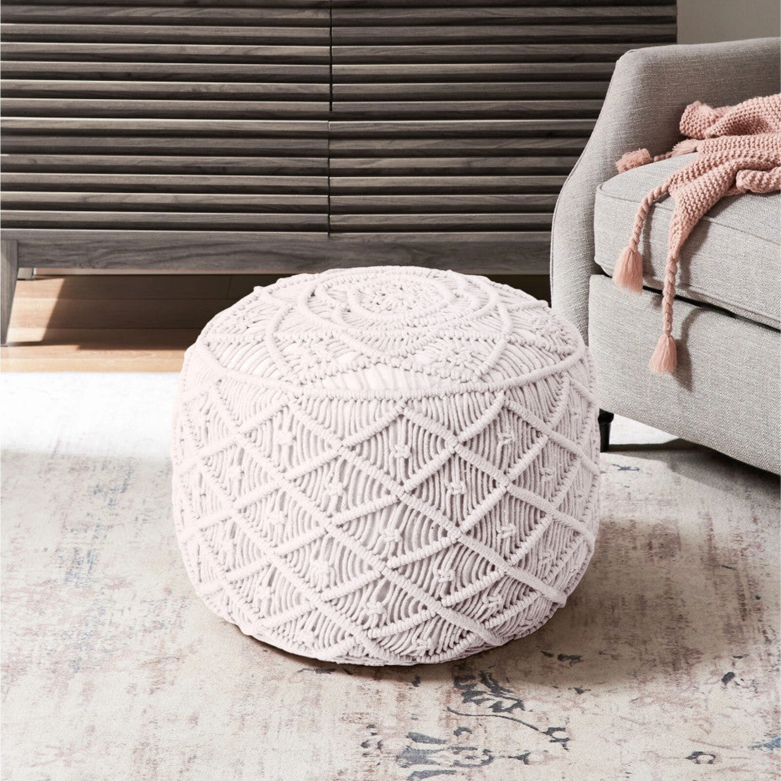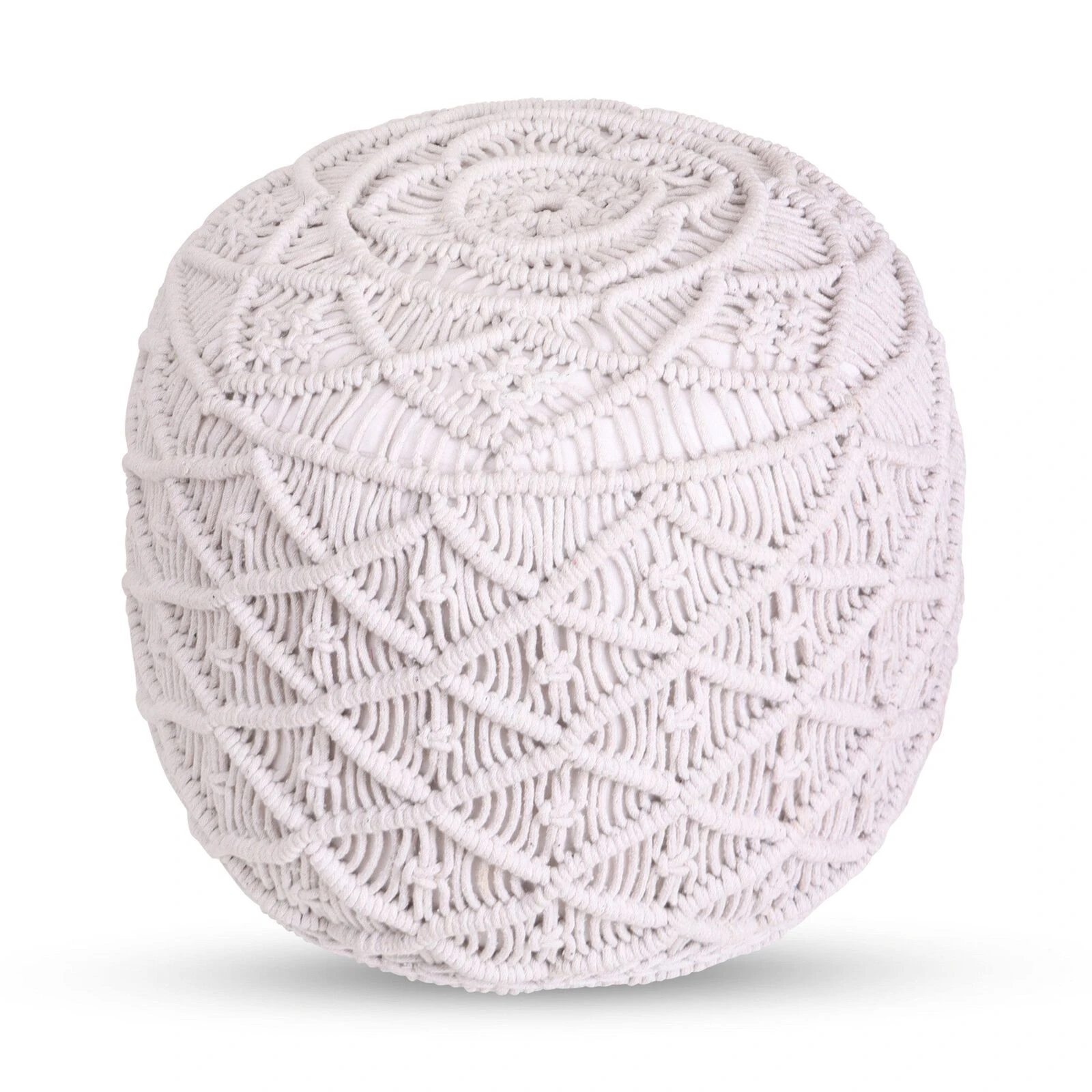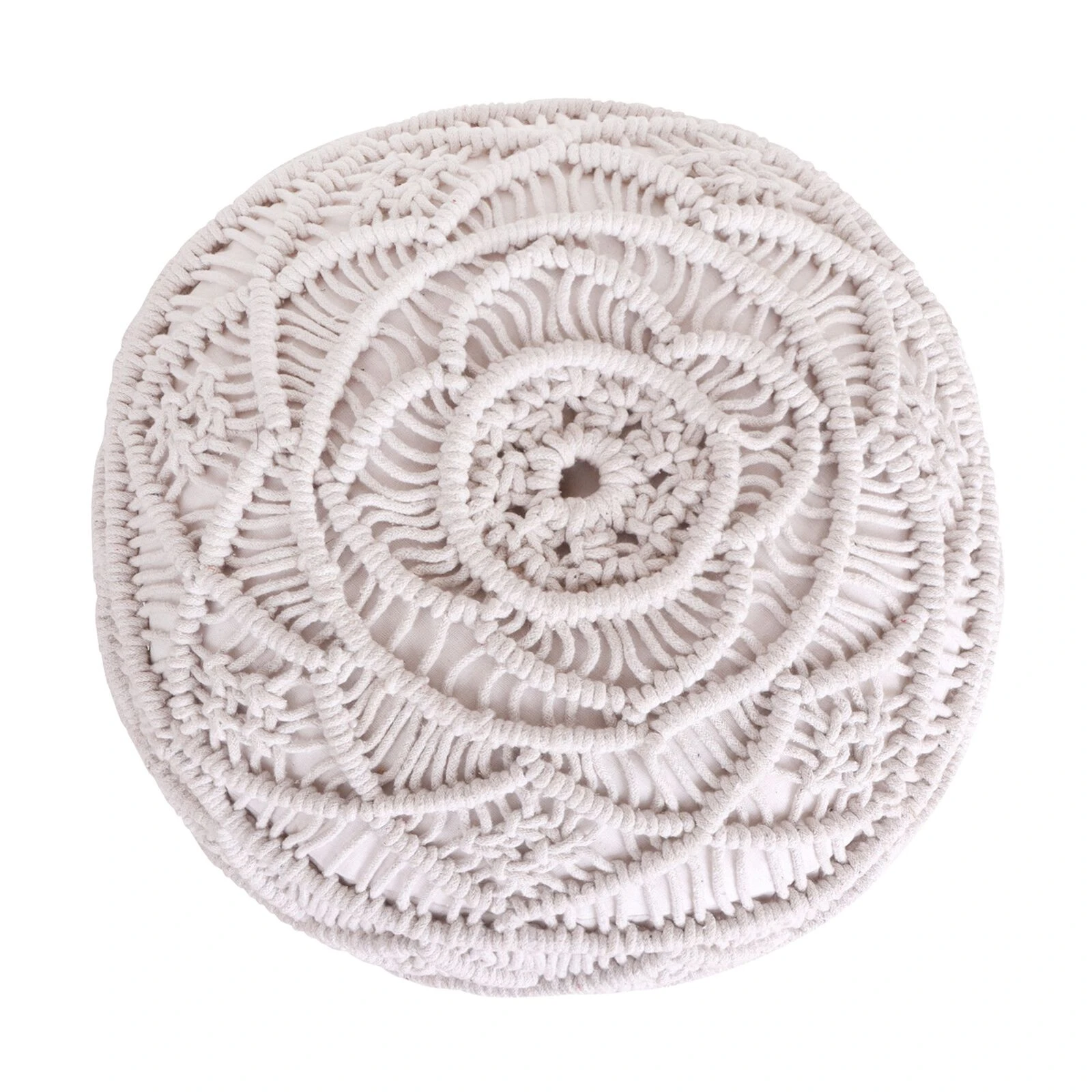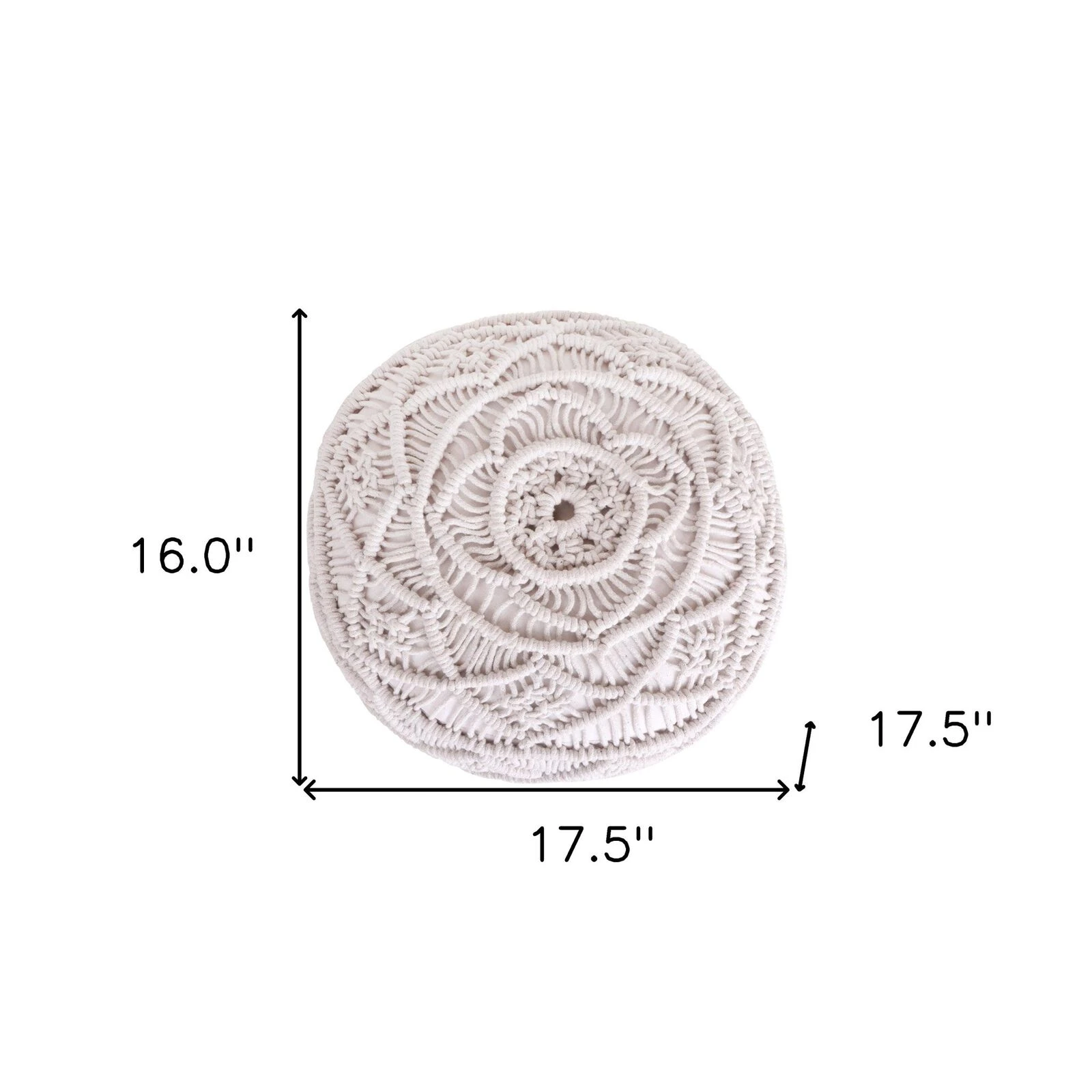 Homezia 18″ White Cotton Blend Round Pouf Floral Ottoman