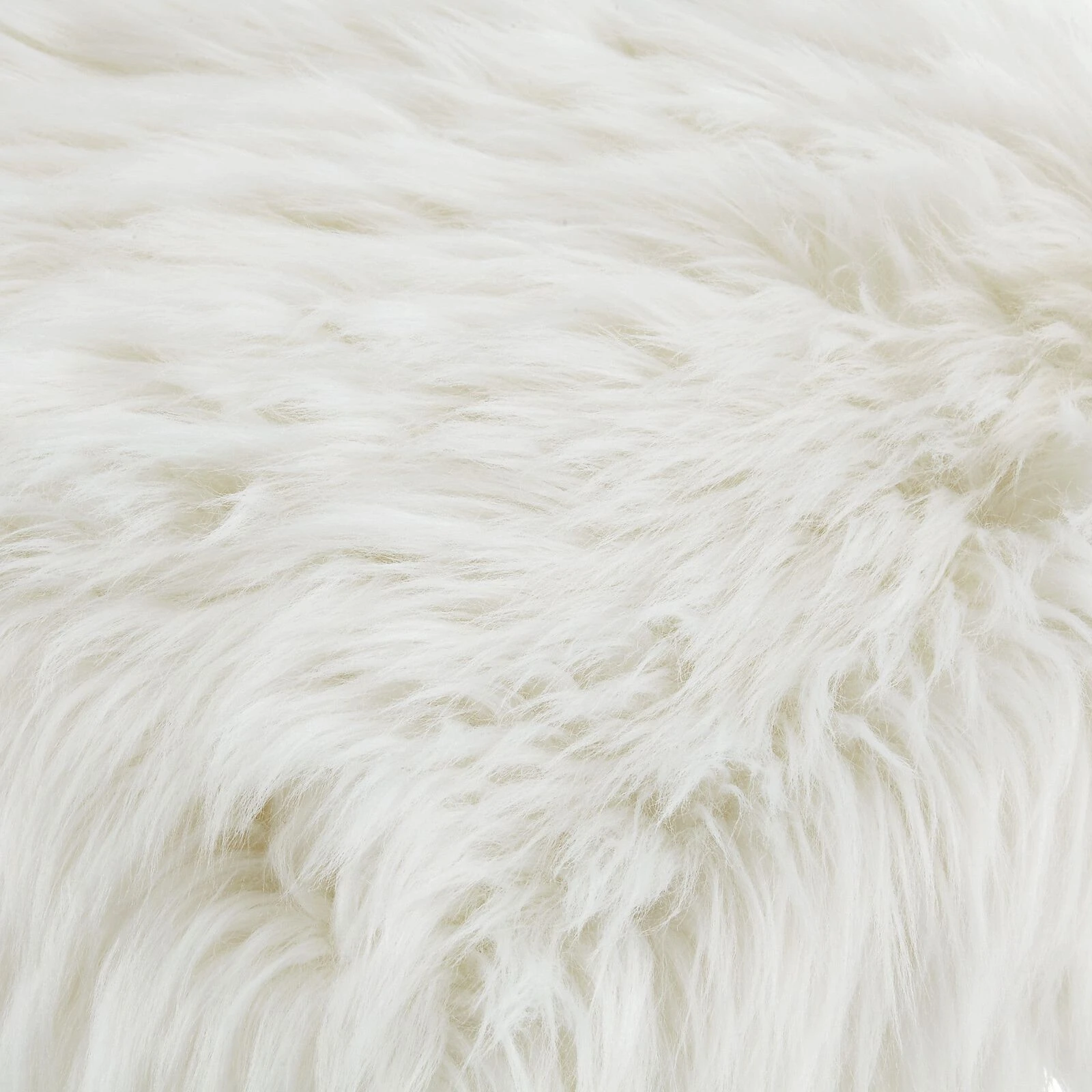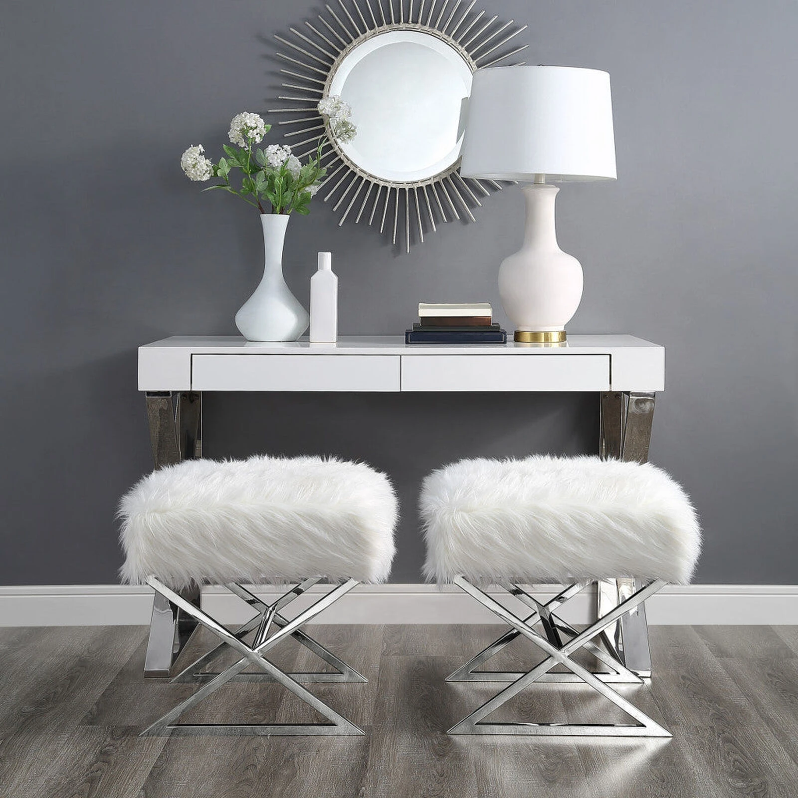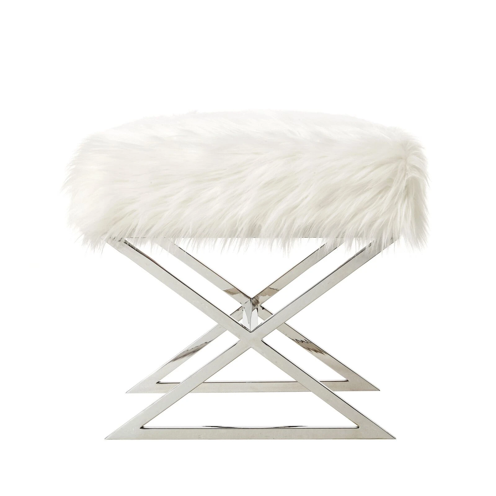 Homezia 18″ White Faux Fur With Silver Ottoman