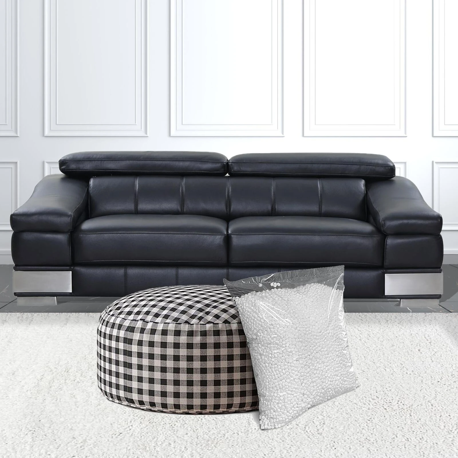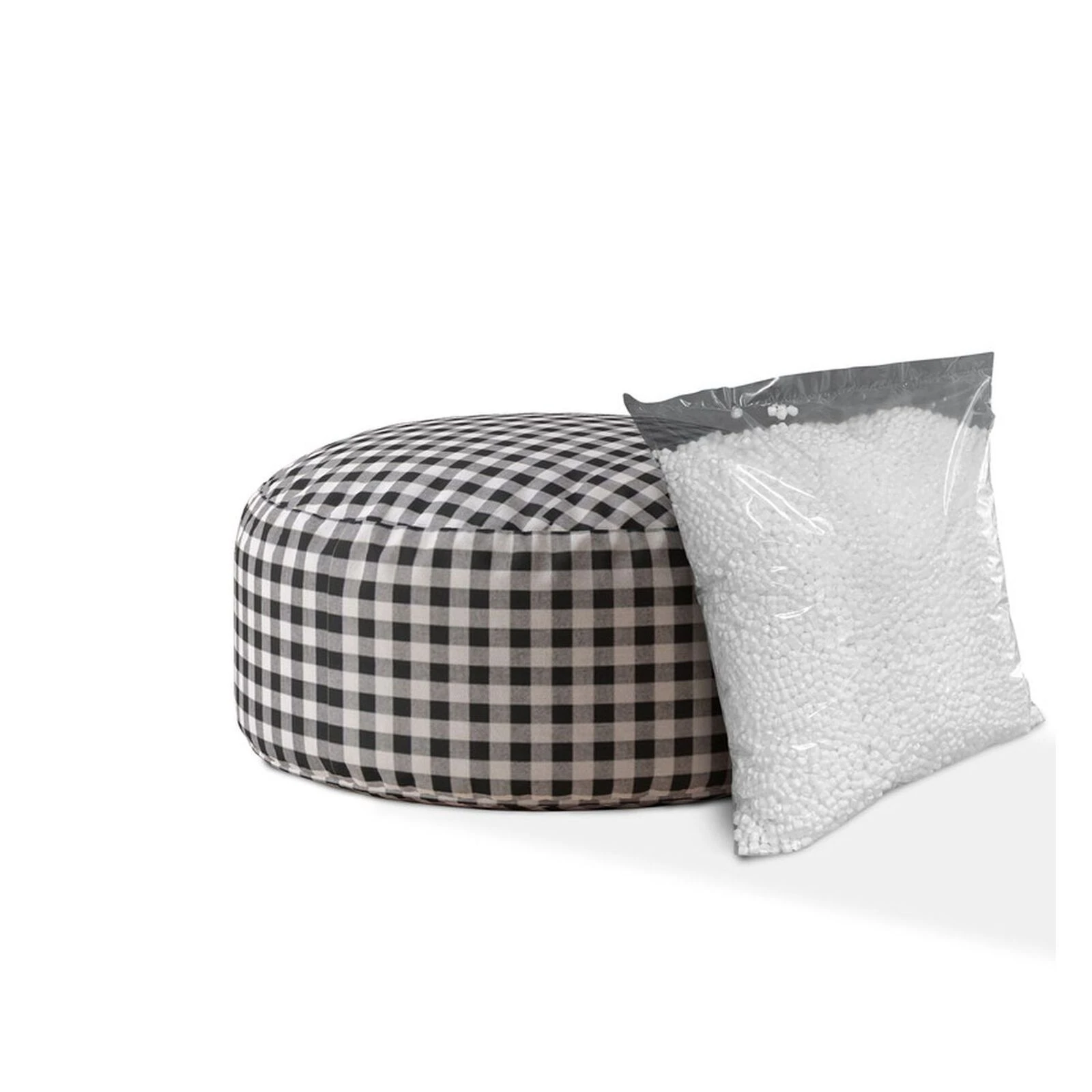 Homezia 24″ Black And Grey Cotton Round Gingham Pouf Ottoman