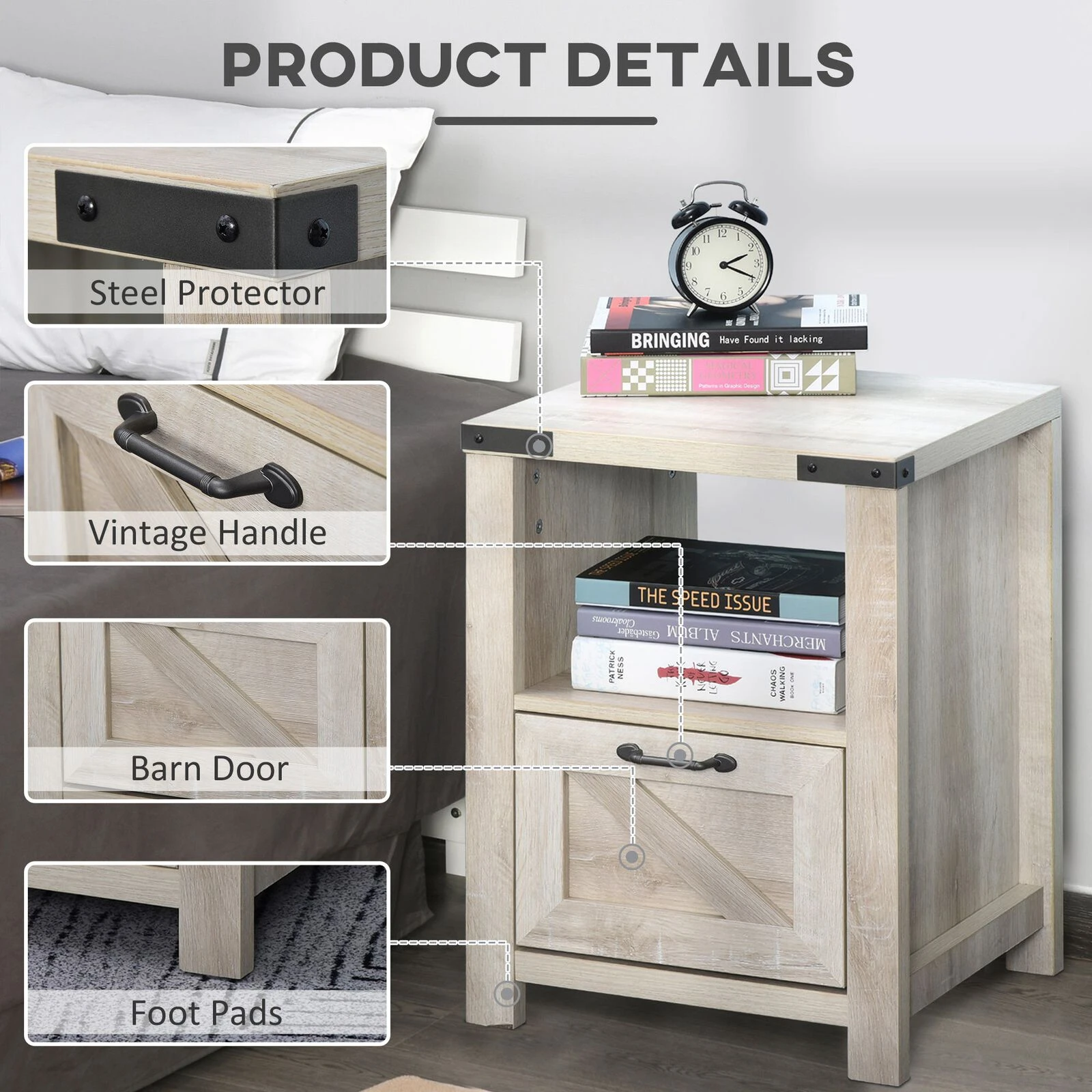 Industrial Side Table with 1 Drawer 1 Shelf Retro End Desk with Big Tabletop for Living Room Bedroom Dorm, Natural