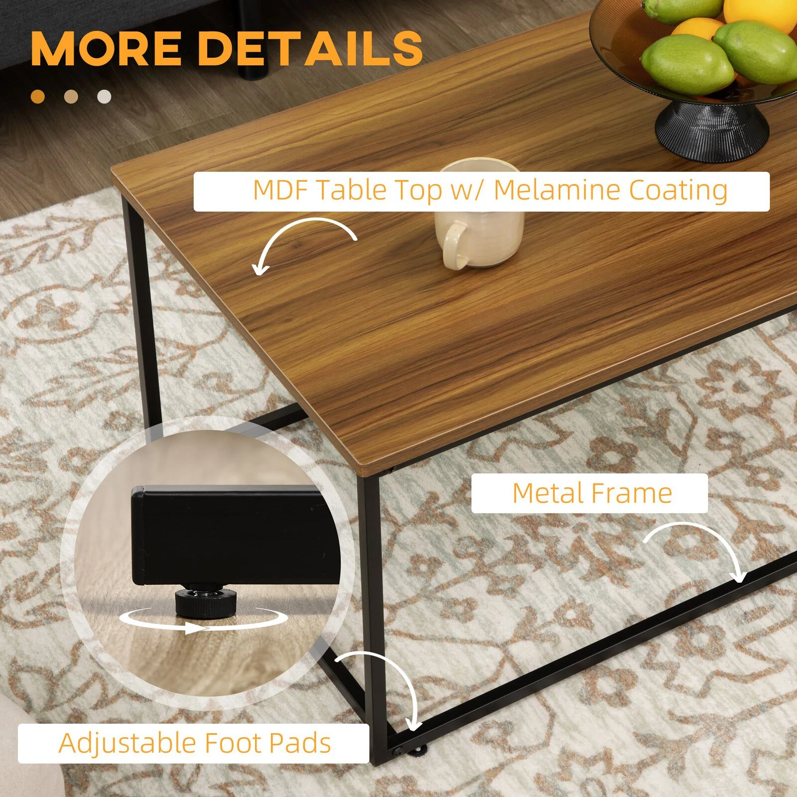 - – Solid Construction The coffee tables for living room are made of quality P2 MDF with melamine coating which allows easy cleaning with a dry cloth, sturdy steel frame with a powder-coated process can hold up to 55lbs (total). Enjoy a durable accent table set suitable for daily use.