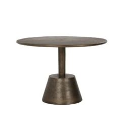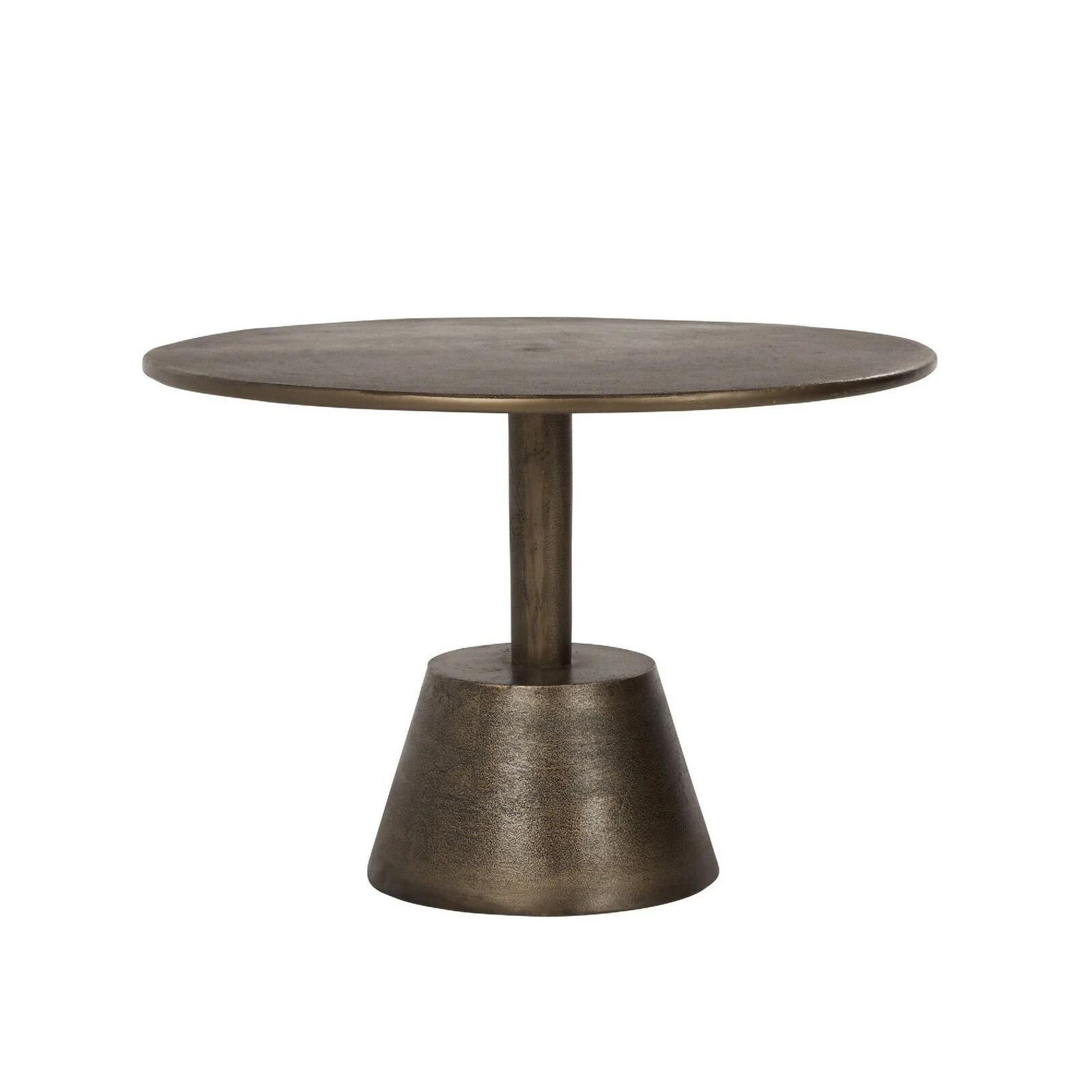 Handcrafted and embellished in antique bronze finish, this mid height side end table is a piece of fine craftsmanship and vintage style. The wide and spacious top is perfect for placing books, necessities, decorations, and a table lamp. The thick, cone shaped pedestal base ensures stability and durability for years to come. Check out our Ley collection for more options.
