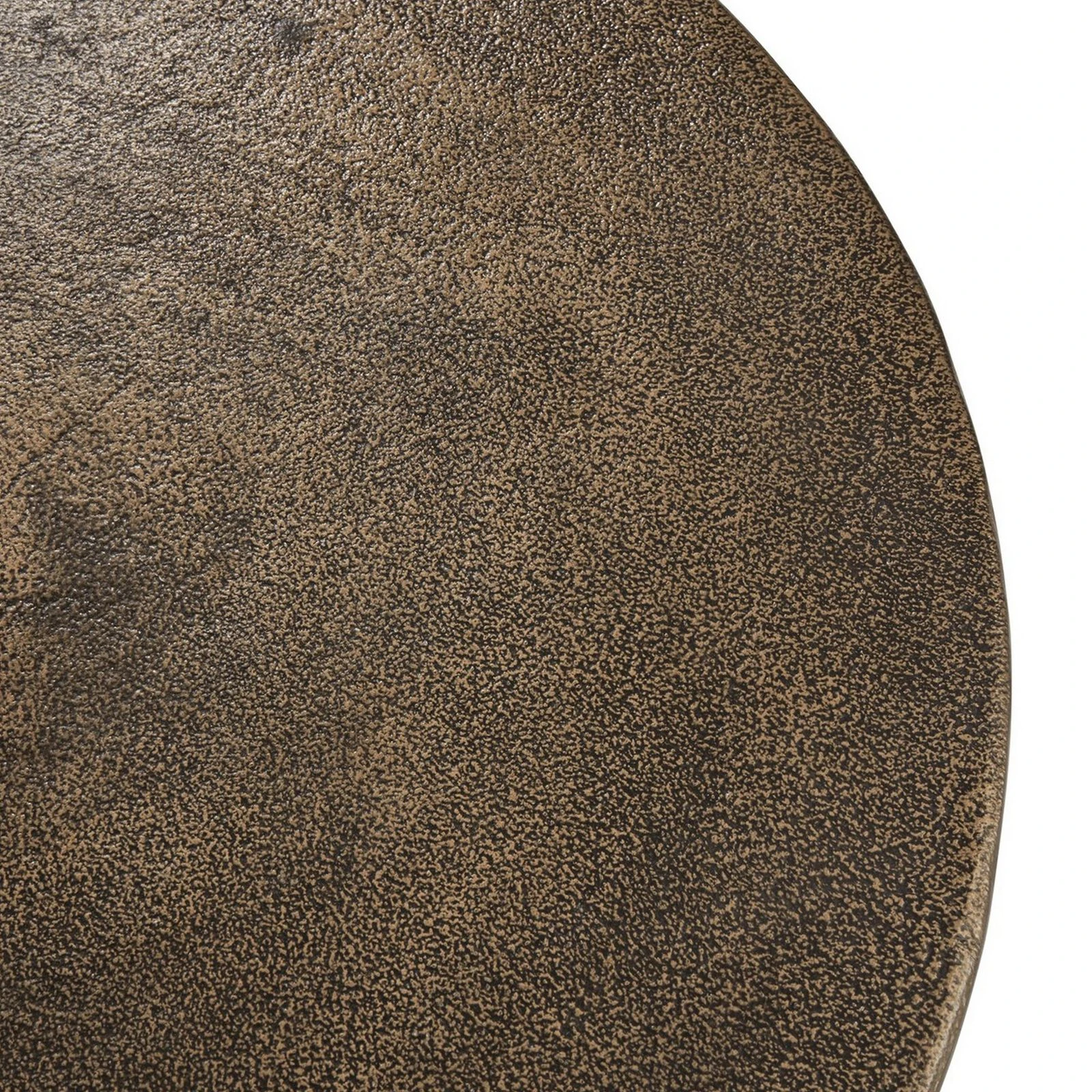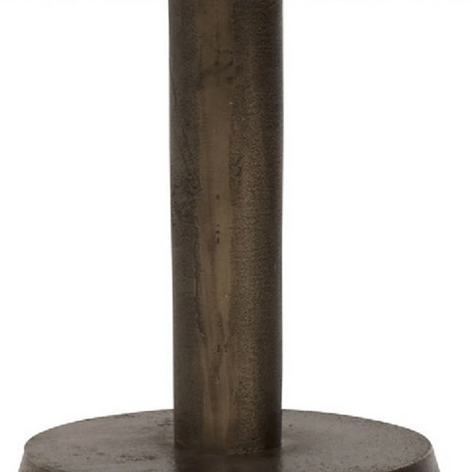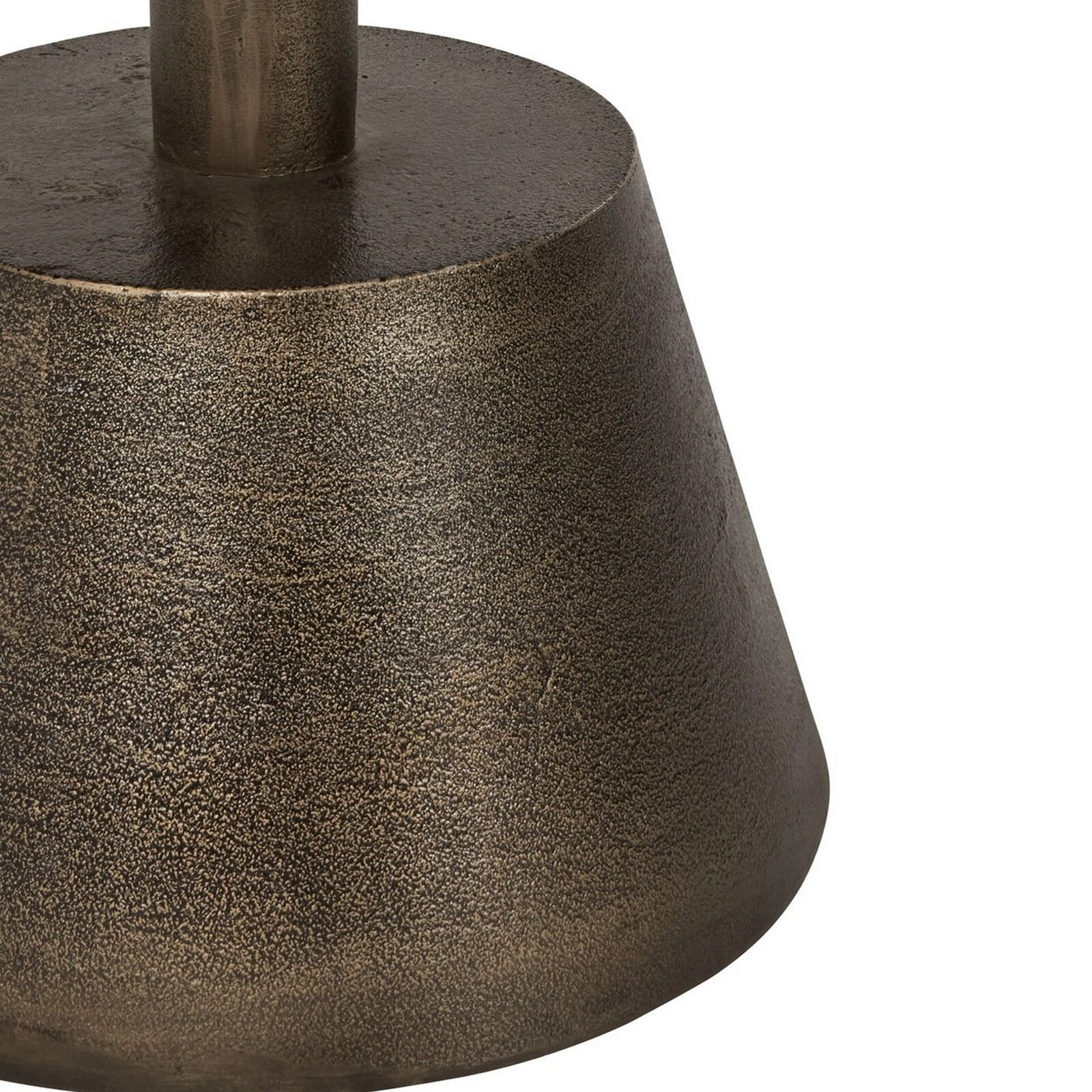 Ley 28 Inch Aluminum Side End Table, Round Top, Pedestal Base, Bronze-Benzara