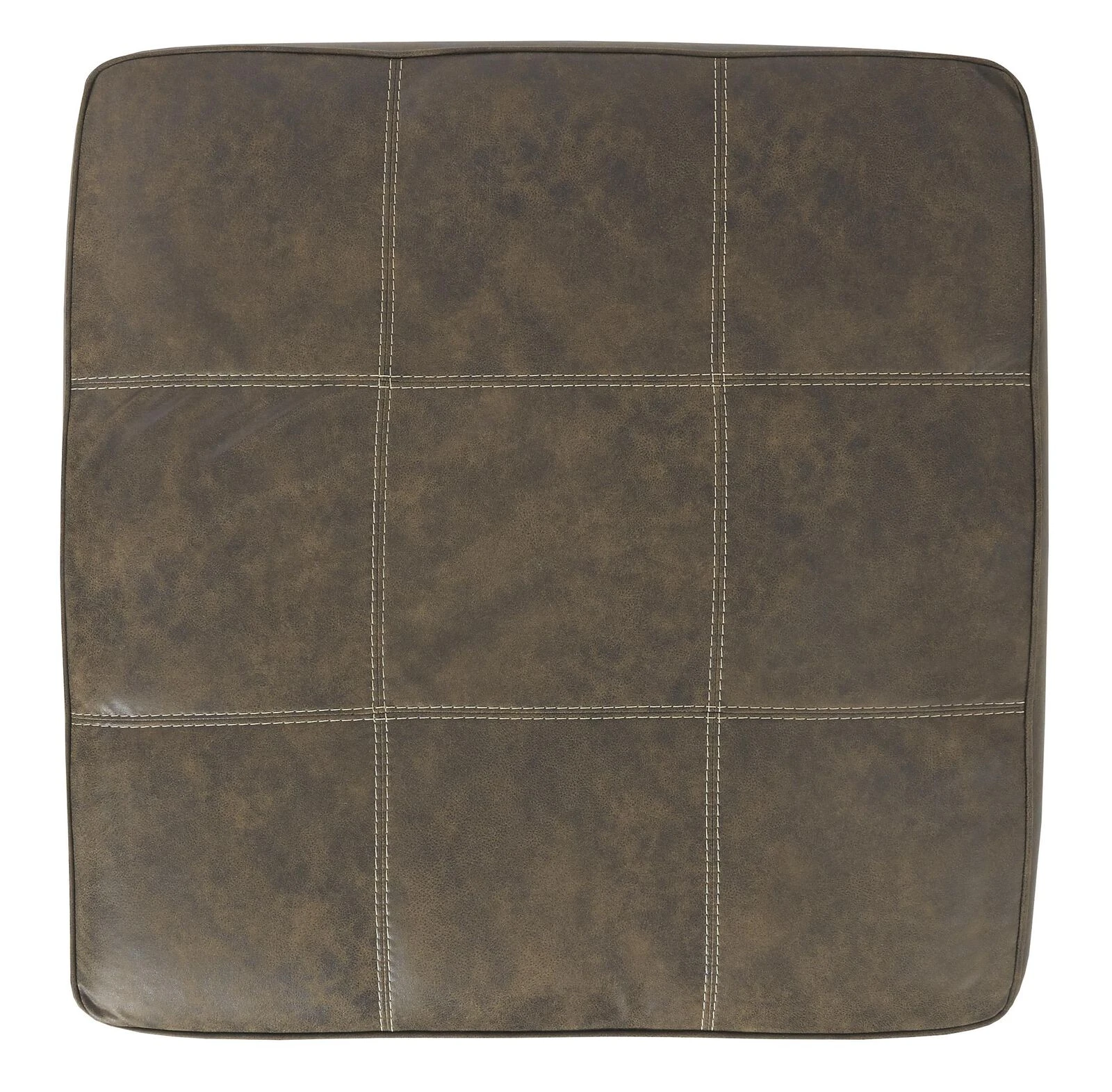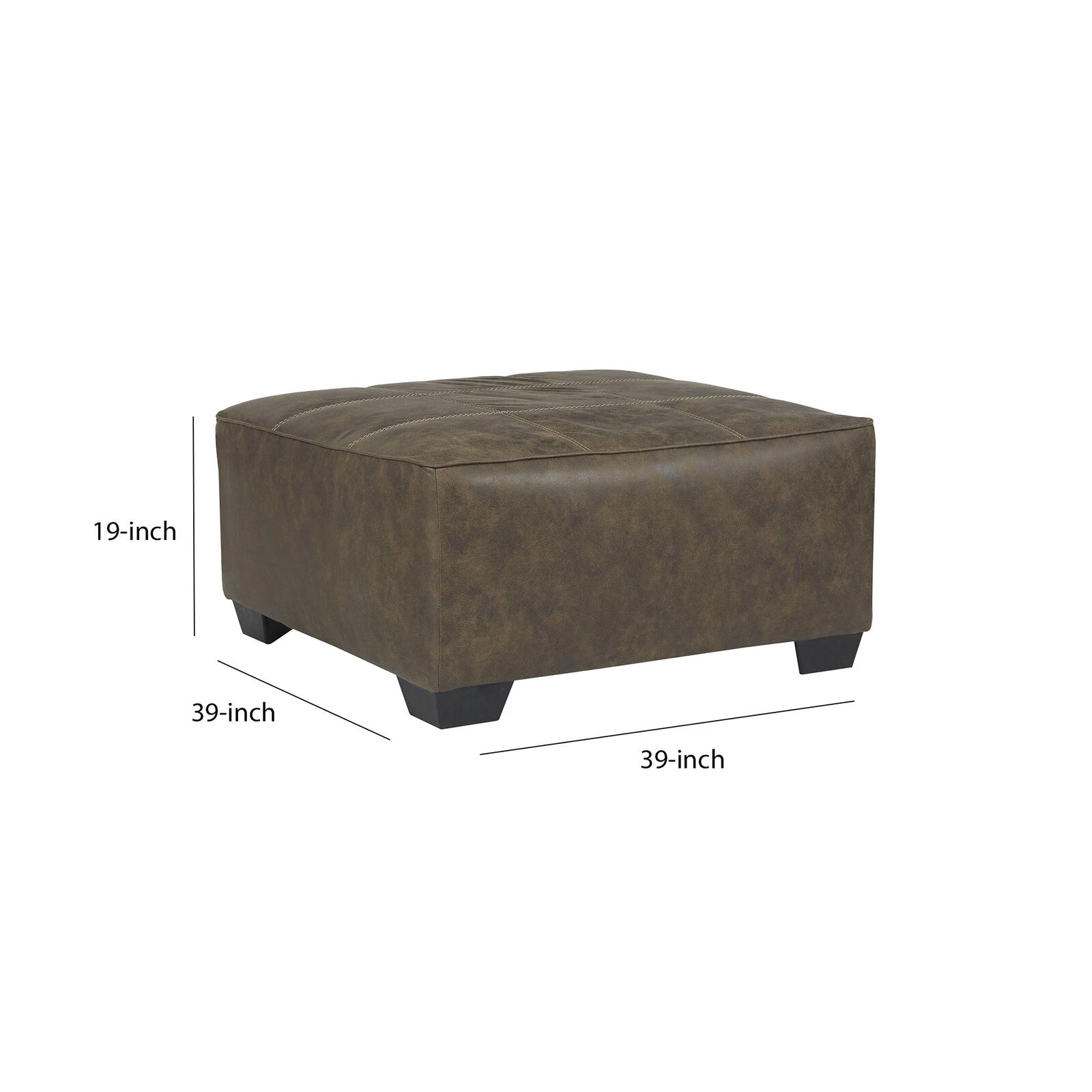 Oversized Ottoman with Tapered Block Legs and Jumbo Stitching, Brown