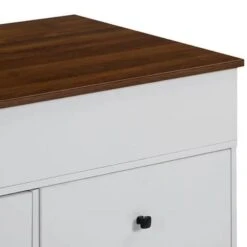 35 Inch 3 Tier Console Table, Fir Wood, Carved Panels, Brown And White-Benzara