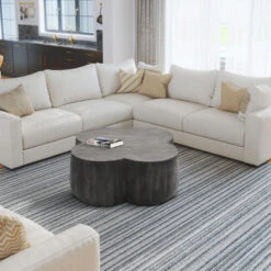 36 Inch Artisanal Classic Coffee Table, Clover Leaf Drum Shaped Mango Wood Frame, Gray-Benzara