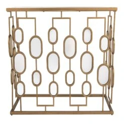 Metal And Glass Sofa Table With Vertical Slat Design, Gold-Benzara