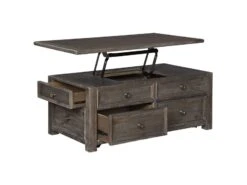 Rectangular Wooden Sofa Table With Metal Powder Coated Base, Gray And Black-Benzara
