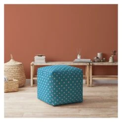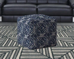 Homezia 17″ Black And Grey 100% Polyester Abstract Pouf Ottoman