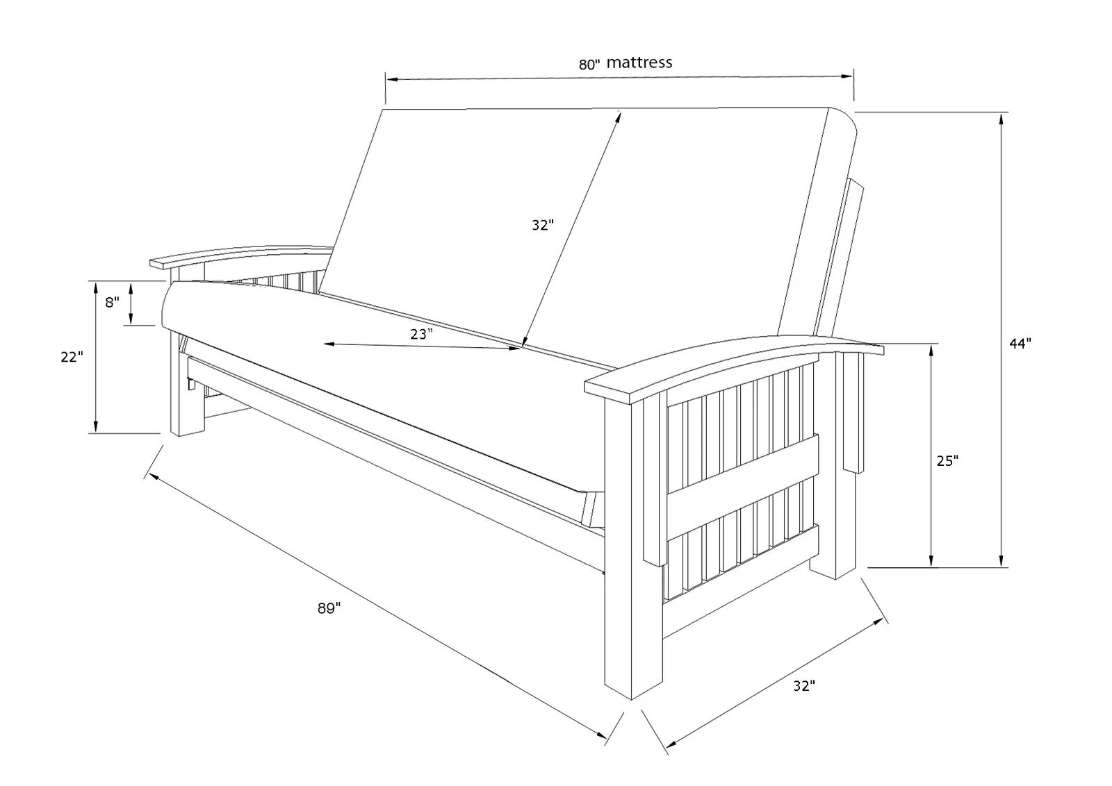Designed with your comfort in mind, this is one of the widest solid wood futons available — extending almost 7-feet! Feel free to stretch out and relax on this futon and invite family or friends overnight without worrying about sleeping accommodations. If not using as a bed, this futon has two positions allowing you to sit or lounge and the slatted arms have a gentle curve to fit your body. The mattress offers hinged coil innersprings, covered with high density foam, and finished with decorative, tufted upholstery for softness and moldability allowing the mattress to rest in the perfect position every time.