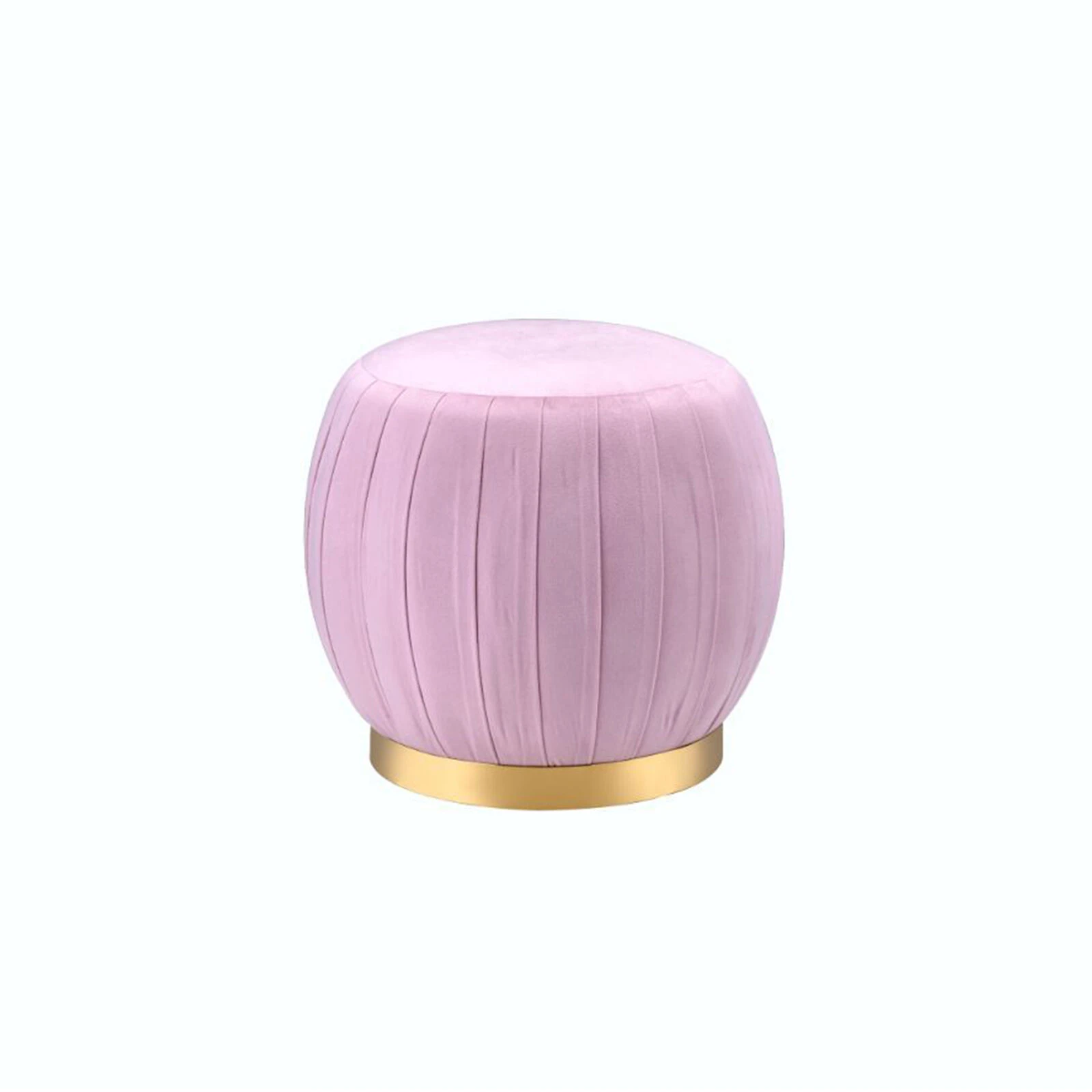 Contemporary and glamorous elements meet in this round ottoman. With a striking cylindrical silhouette, this compact piece will fit easily in smaller spaces. Featuring a round metal base in a gold finish and a fully padded seat in velvet fabric. Perfectly ideal for using as a footstool, extra seating, or a little side table, this piece will provide functionality while adding a touch of modern accent to your home.