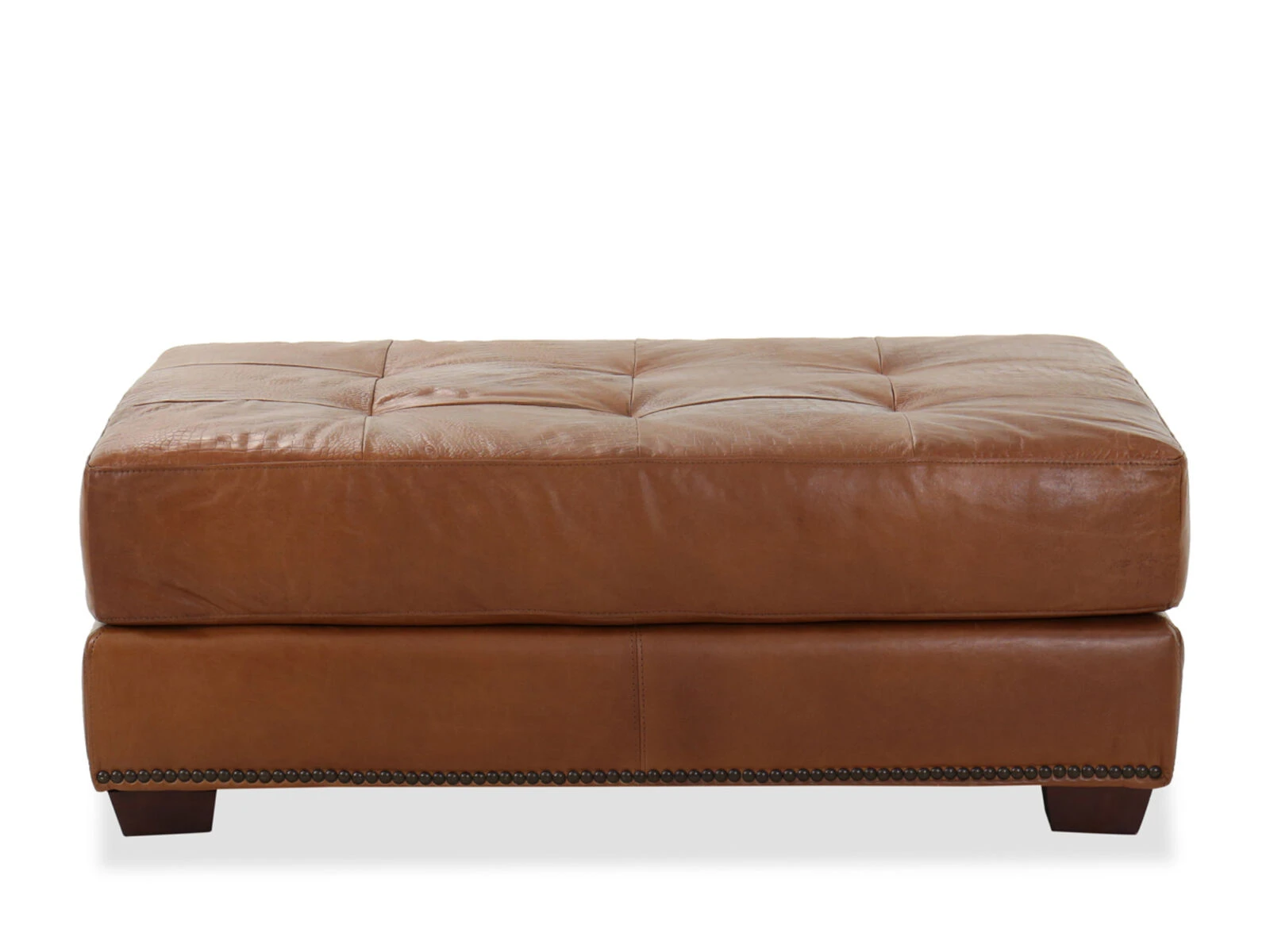 Enhance your traditional interior with a touch of modern versatility offered by the 50″ Leather Tufted Rectangular Ottoman. Wrapped in pure top-grain leather, it is topped by a down-blend seat pillow that can be utilized as additional seating, a comfy footrest, or even a makeshift coffee table. The brown tone of the leather upholstery is garnished with an elegant trim of nailhead accents at the sides for visual interest.