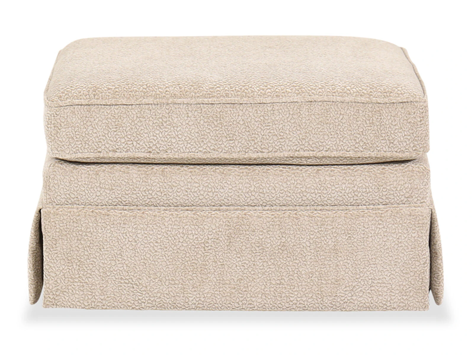 Experience the epitome of refined relaxation with the Signature Seating Ottoman with Skirt. Wrapped in a captivating beige colour upholstery, this ottoman seamlessly blends contemporary style with timeless elegance. It flaunts a gracefully tailored skirt that adds a touch of sophistication to any space while the sumptuous cushioning invites you to indulge in luxurious comfort.