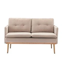 Get a modern look that adds comfort and style to your home with this Velvet Sofa. This accent loveseat sofa features a sleek design with stainless steel feet, combining European style with vintage flair and modern living. The pink velvet upholstery adds a touch of elegance to any living space. The sofa has an overall dimension of 55.91″ W x 28.35″ D x 34.25″ H and a seat width of 50″. It has a weight capacity of 700 lbs and is made with a sturdy plywood frame. The seat fill material is foam, ensuring a comfortable seating experience. Assembly is required and the product comes with detailed instructions. Complete your living room decor with this chic and stylish seating option.