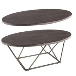Metal Framed Coffee Table with veneer Top, Weathered Oak Brown and Black