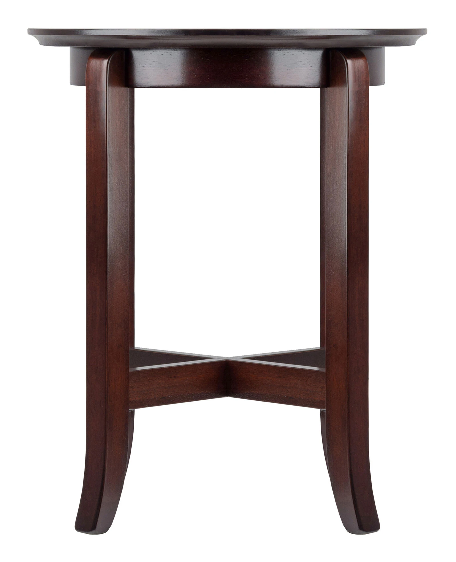 Add extra table space to a living room, den or bedroom with this beautiful and stylish Winsome Wood Toby Round Accent Table. Constructed of sturdy solid wood, the 18″ diameter table is a perfect addition for many areas of your home. This small, round accent table coordinates with both modern and traditional decor and will hold a lamp, picture frames, or small knick-knacks. Finished in a rich espresso, the slightly flared legs give this table a simple yet elegance that will enrich any room you decide to place it. The “X” cross stretcher under the table top is a feature that was added to this collection for extra support all while keeping the clean and classic style of the design. For larger beds, sofas and/or rooms, try adding one accent table on each end (each sold separately). Finish off your living area with the coffee table from the Winsome Toby collection for a more unified space (each sold separately). Conveniently packed and shipped in 1 box and ready to assemble. Replacement parts can be requested directly to the manufacturer within 60 days from date of purchase. The slightly flared legs and rich dark espresso finish on this table give it a subtle elegance that will enrich the living room, bedroom or entry. There are many possibilities and uses for this classic table. Styling with flared legs and X cross bottom for a unique appeal. Made with combination of solid and composite wood in dark espresso finish. Assembly required.