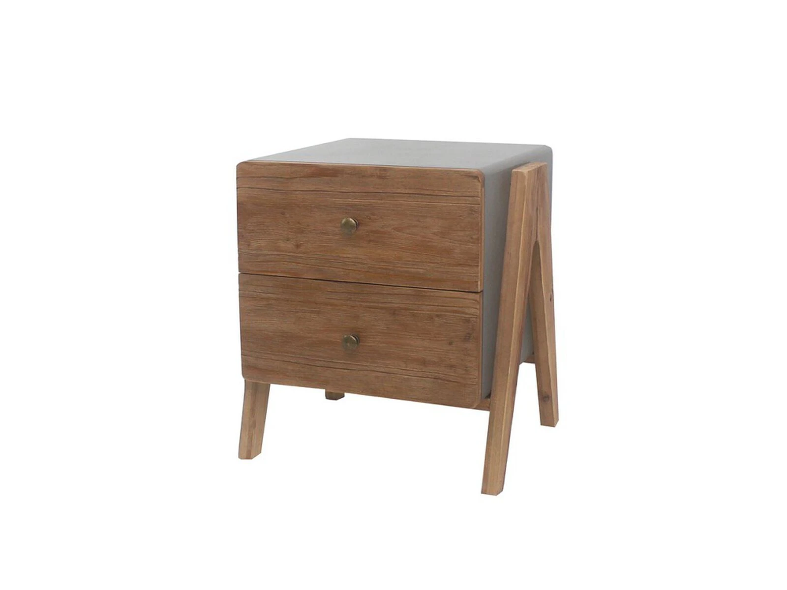 Wooden Side Table with 2 Drawers and A Shape Legs, Brown and Gray
