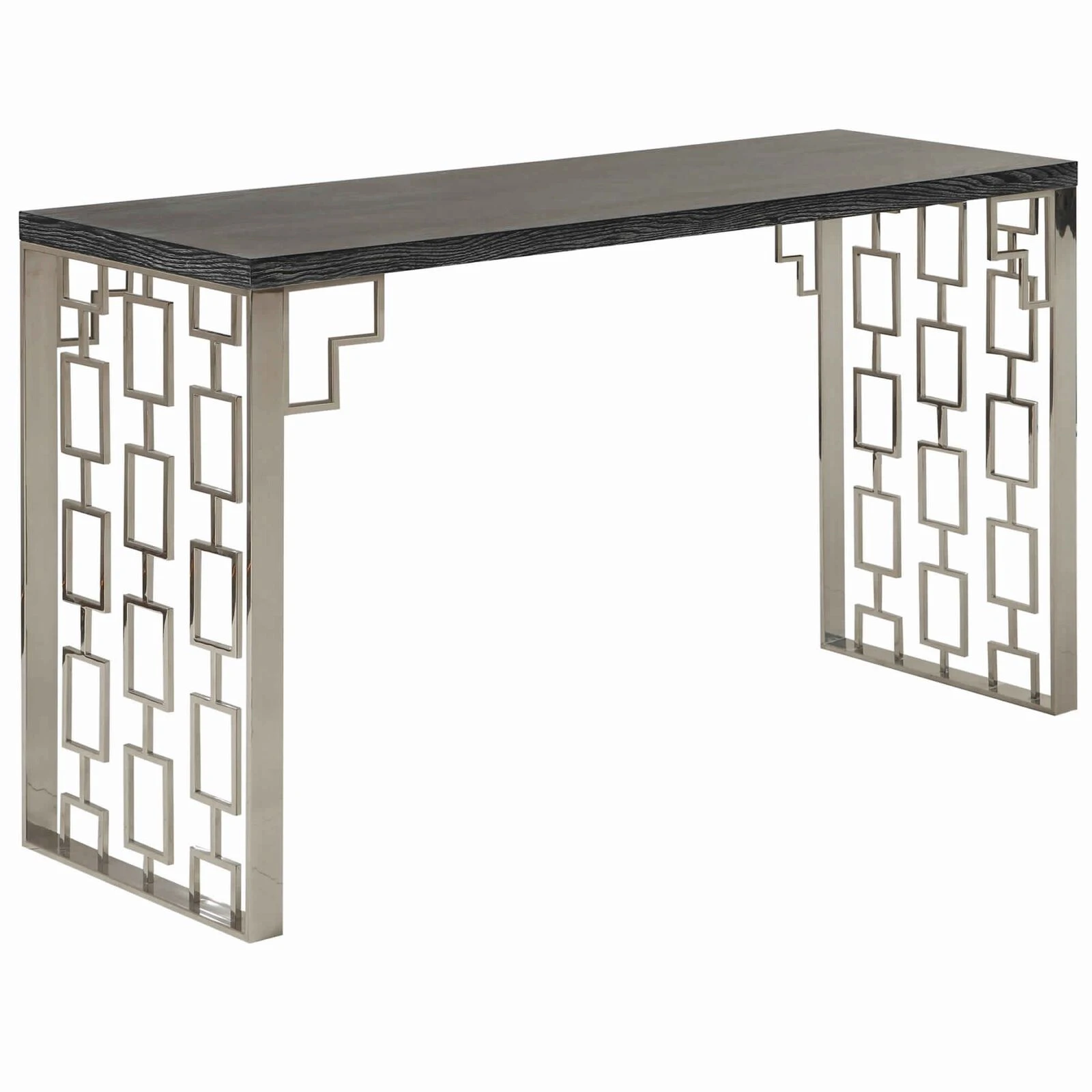 Provide a sophisticated abode to all your exotic decor items by bringing in this industrial style Console Table which showcases lattice cut out design on the side panels. Constructed from the amalgamation of MDF, veneer and metal, it is accented with gray and silver finish.